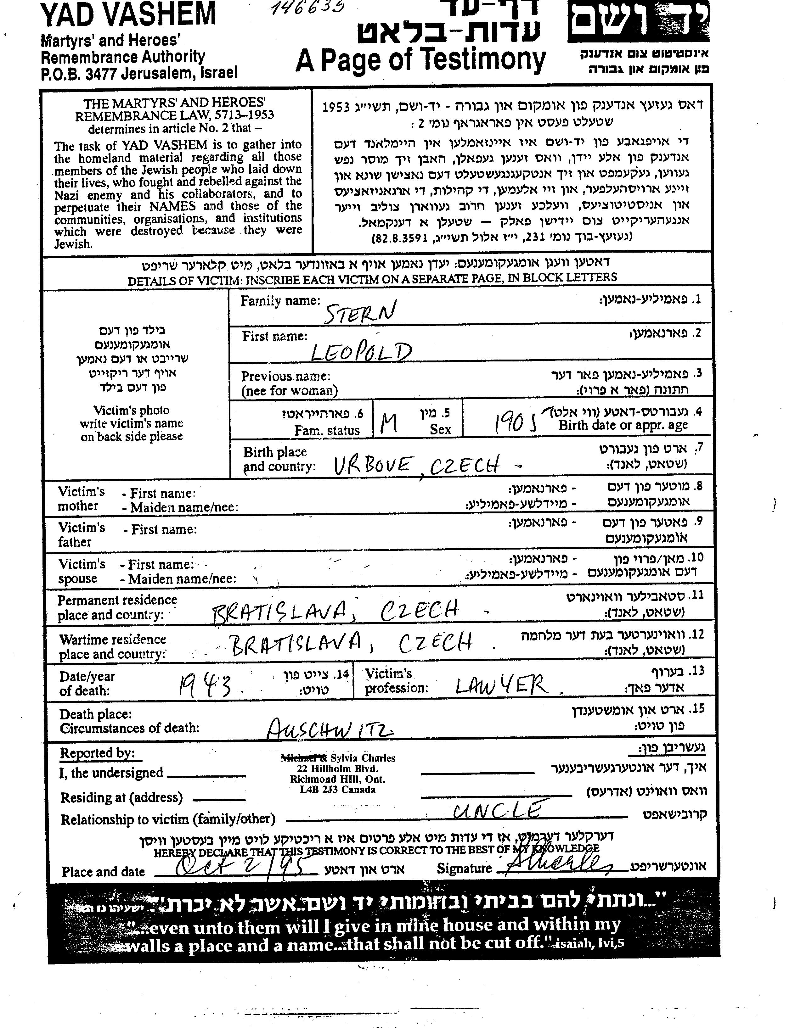 שטרן לאופולד 1905 Bratislava, צ'כוסלובקיה דף-עד
