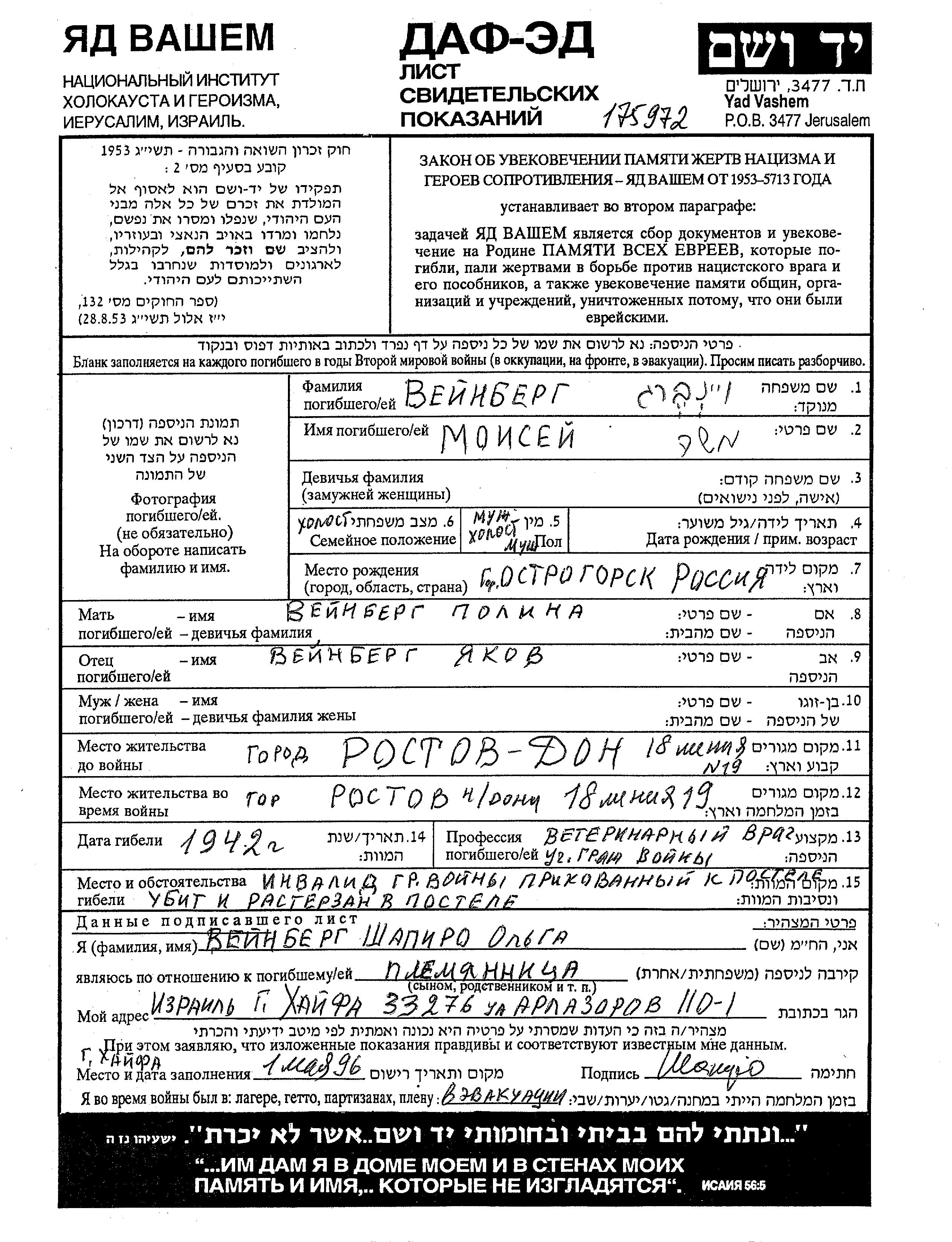 ויינברג מואיסאי Rostov, רוסיה (ברה"מ) דף-עד