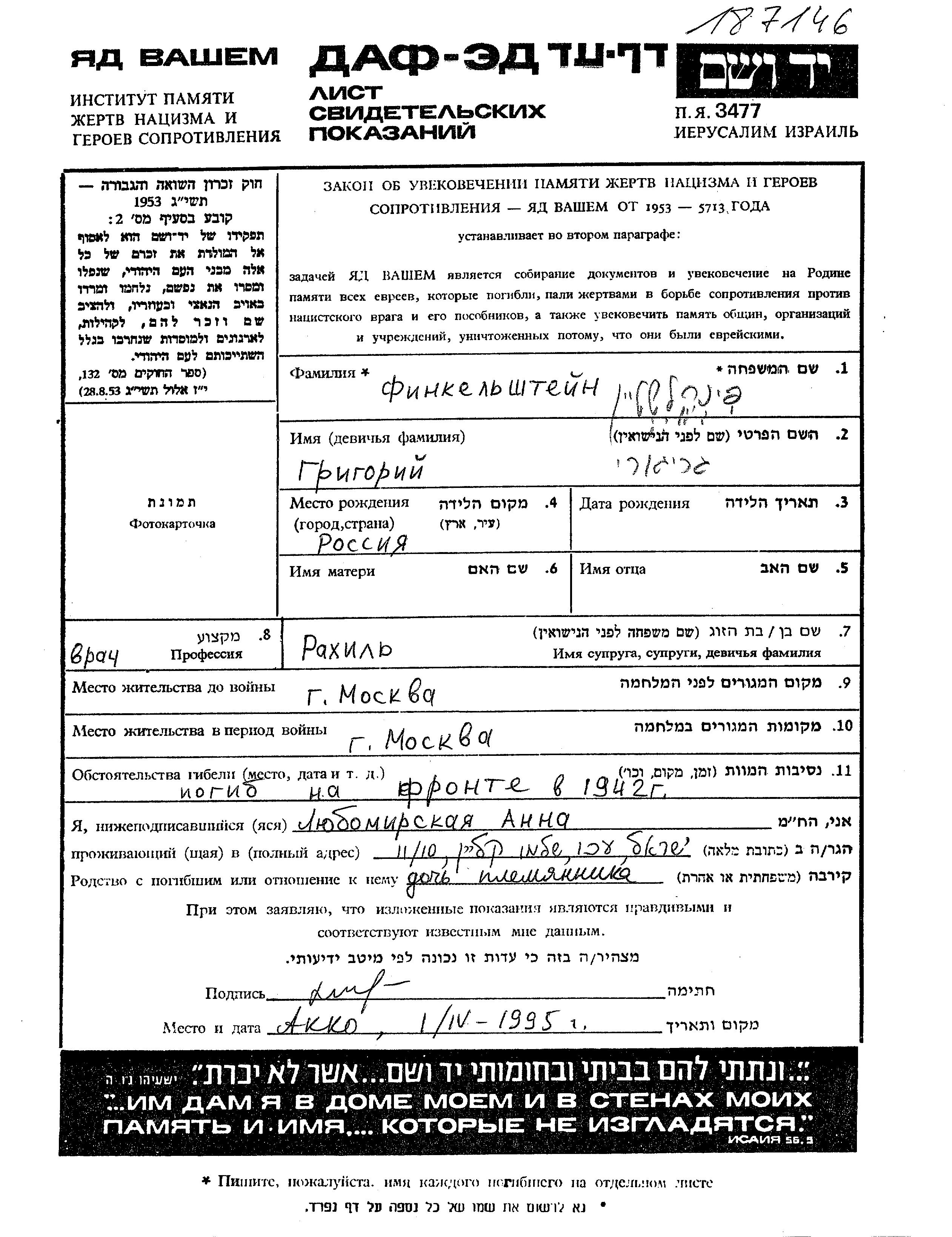 חיפוש שם מוסר דף העד. חיפוש לפי כל שם פרטי, כולל כינוי או שם חיבה