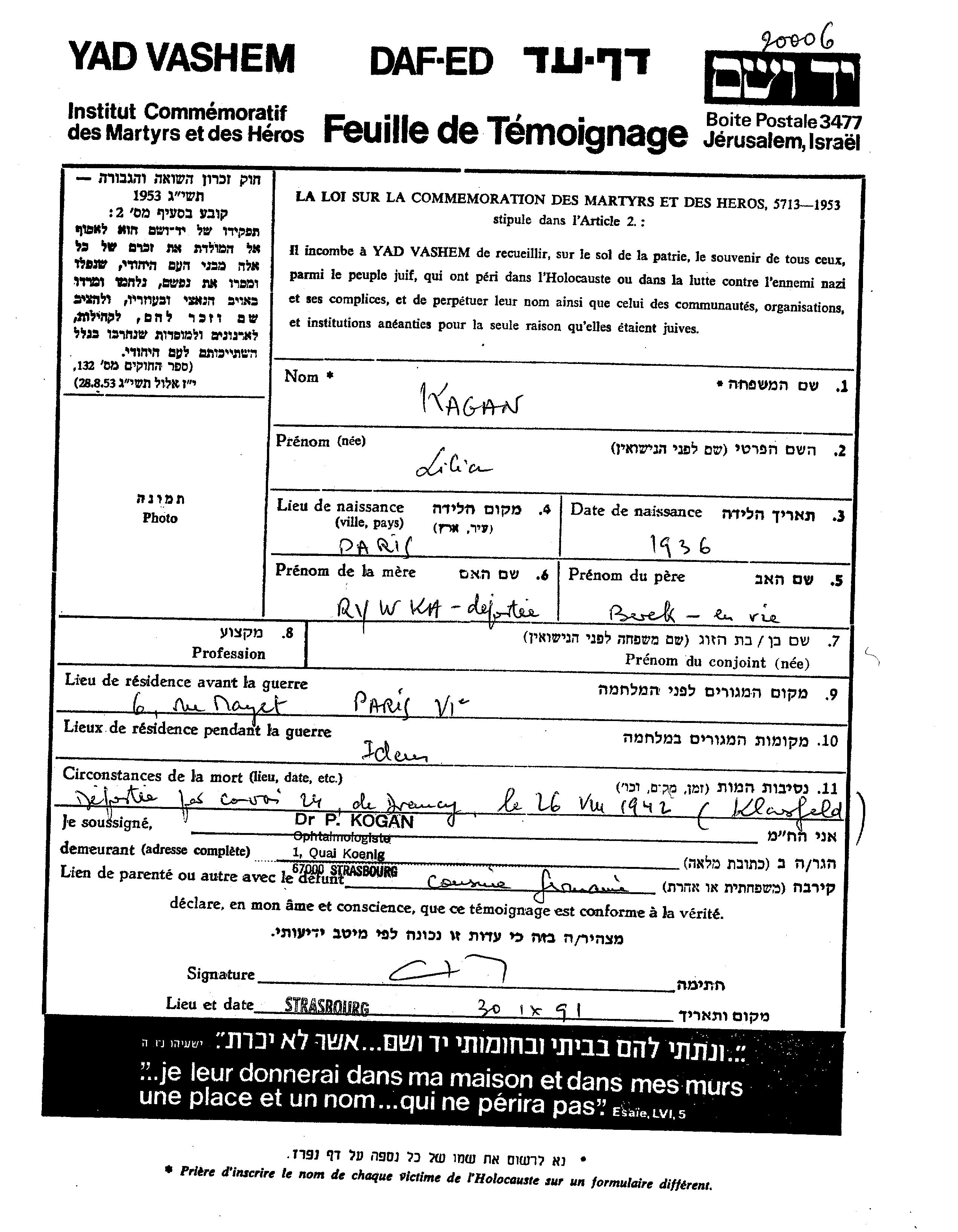 יד ושם - המפעל להנצחת השמות בדפי עד