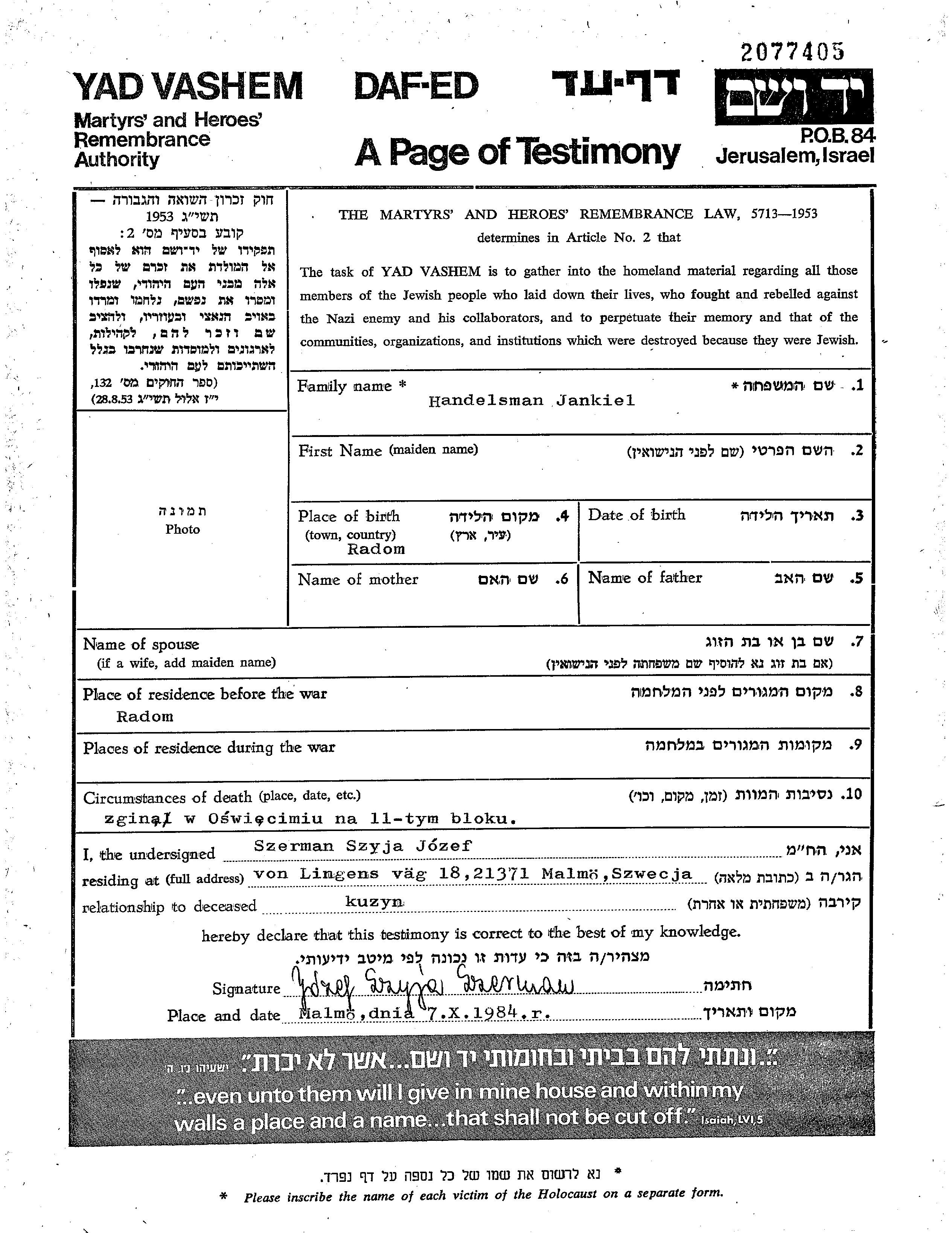 הנדלסמן Jankiel מקום לא רשום, דף-עד