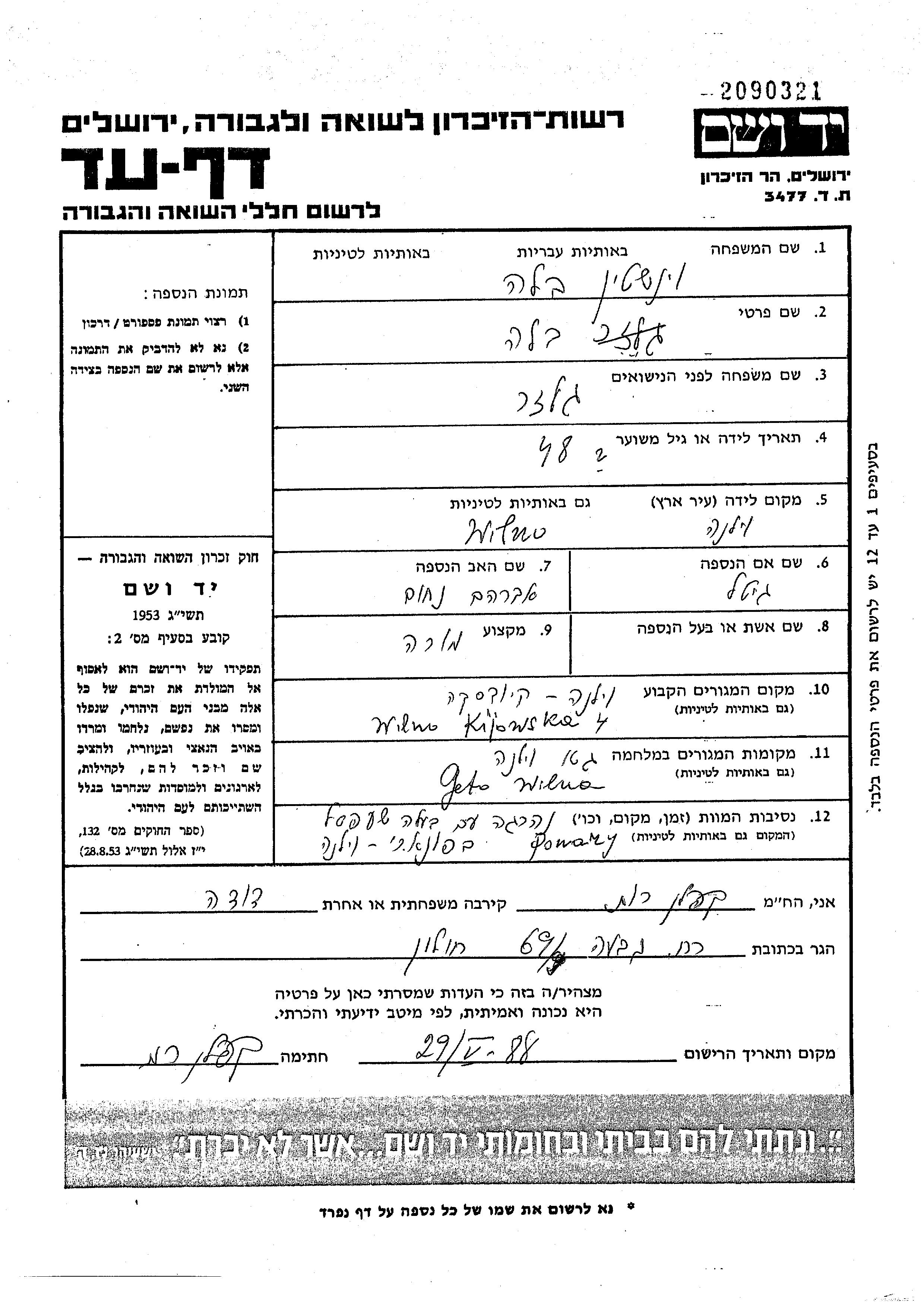 יד ושם - המפעל להנצחת השמות בדפי עד