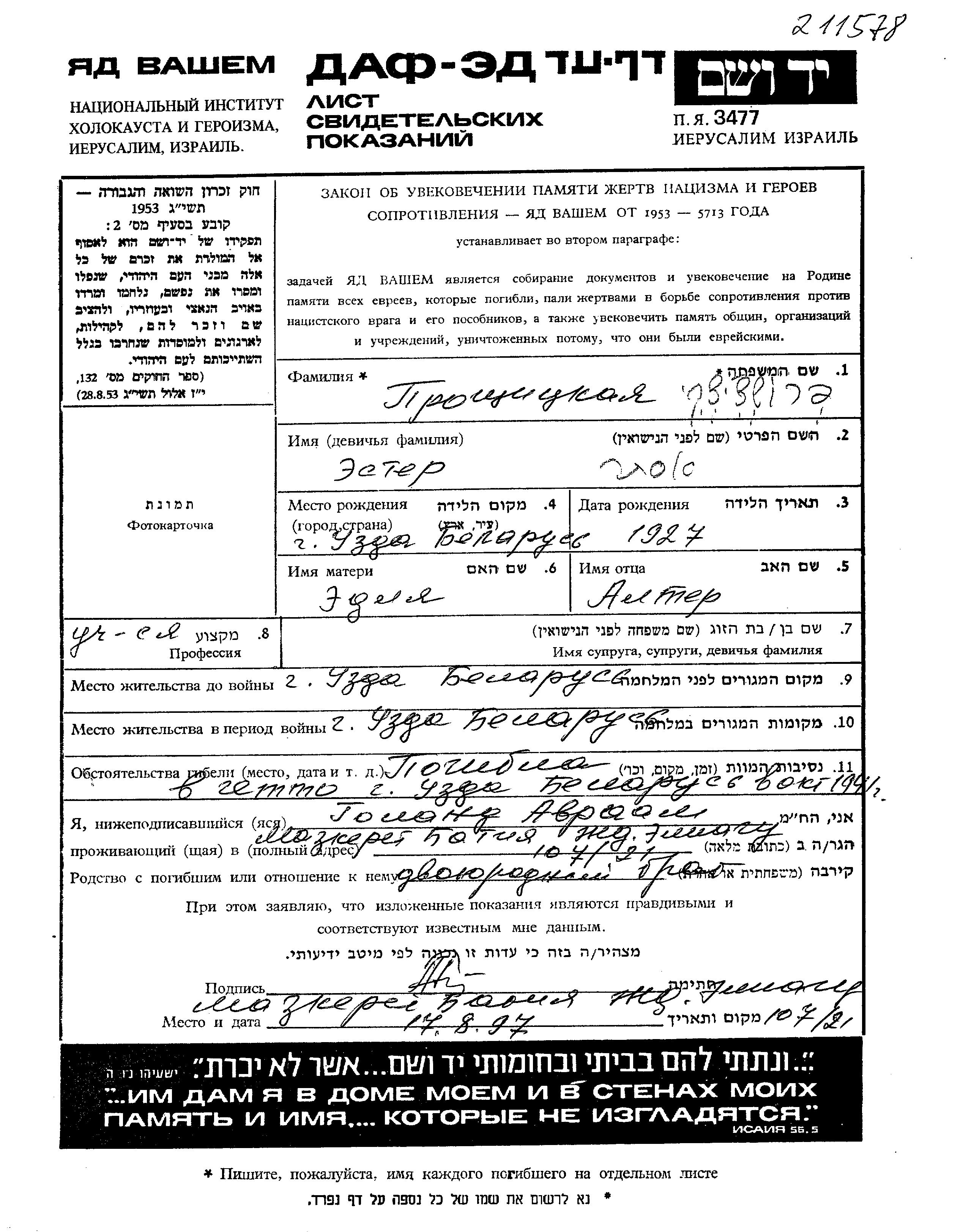 פרושציצקי אסתר 1927 Uzda, ביאלורוסיה (ברה"מ) דף-עד