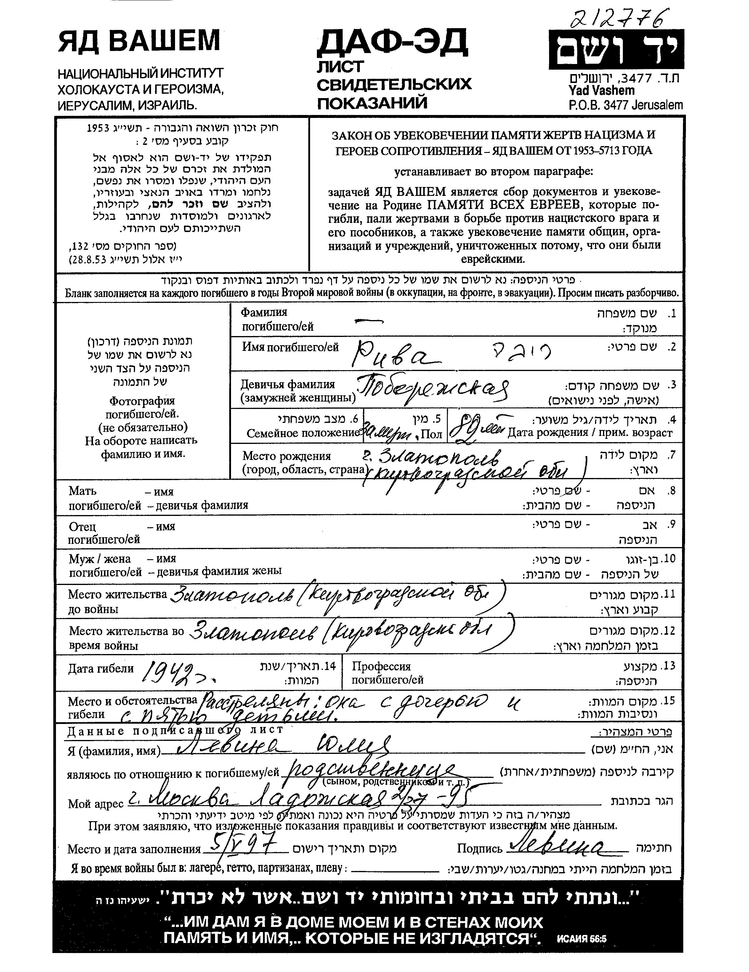 חיפוש שם מוסר דף העד. חיפוש לפי כל שם פרטי, כולל כינוי או שם חיבה
