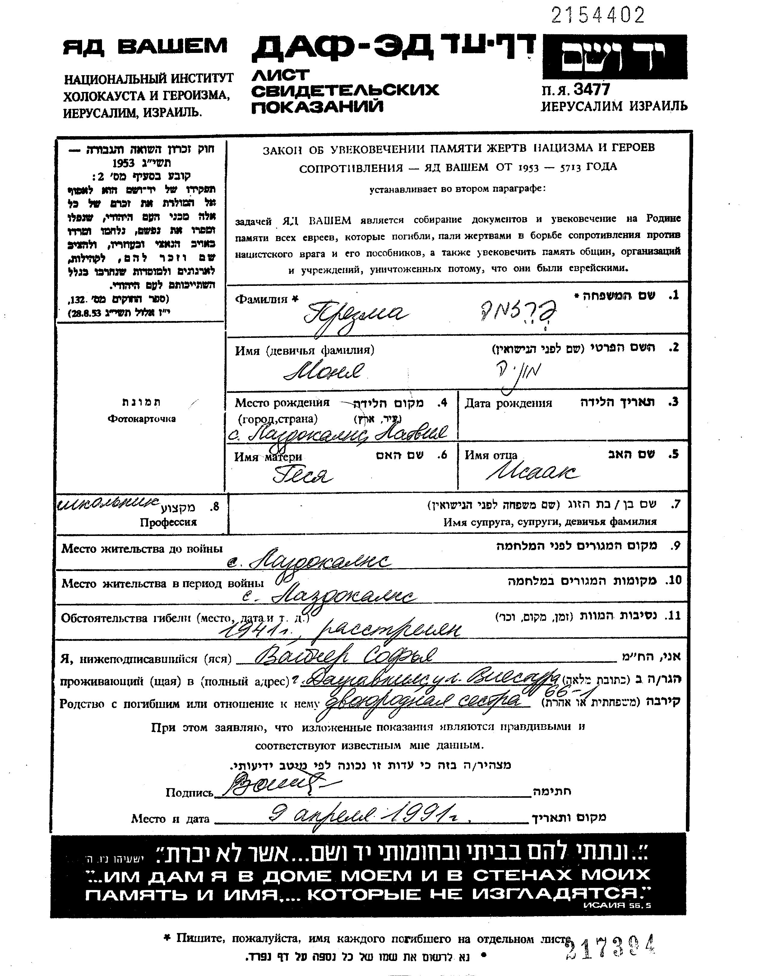 מאגר שמות קרבנות השואה