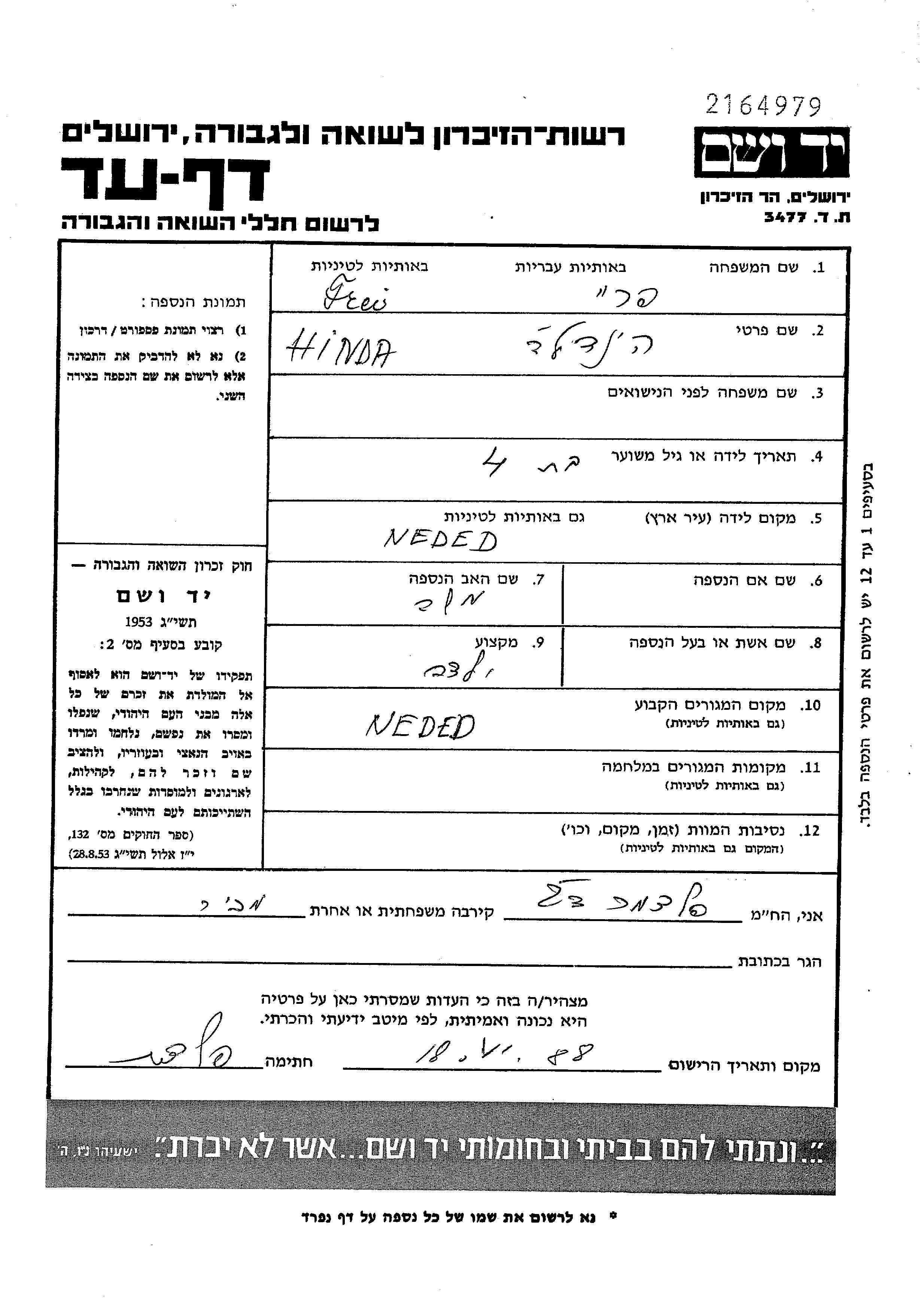 יד ושם - המפעל להנצחת השמות בדפי עד