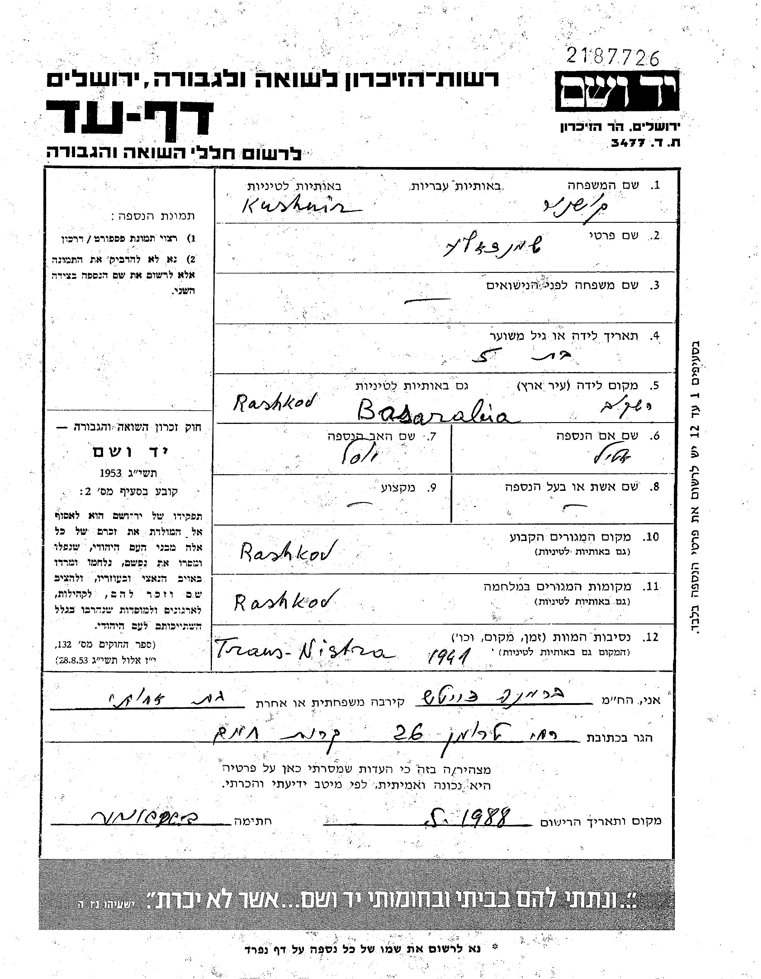 יד ושם - המפעל להנצחת השמות בדפי עד
