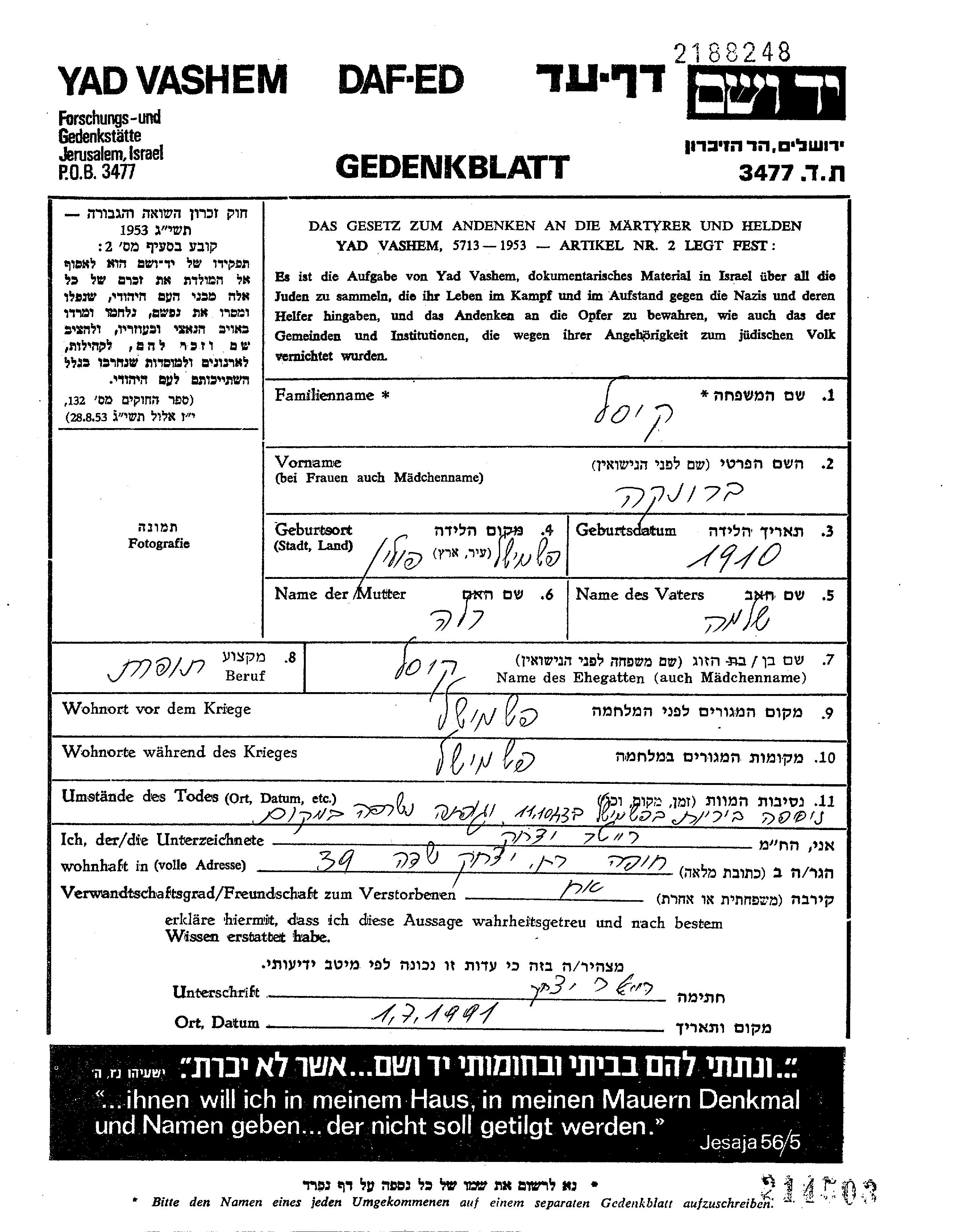 יד ושם - המפעל להנצחת השמות בדפי עד