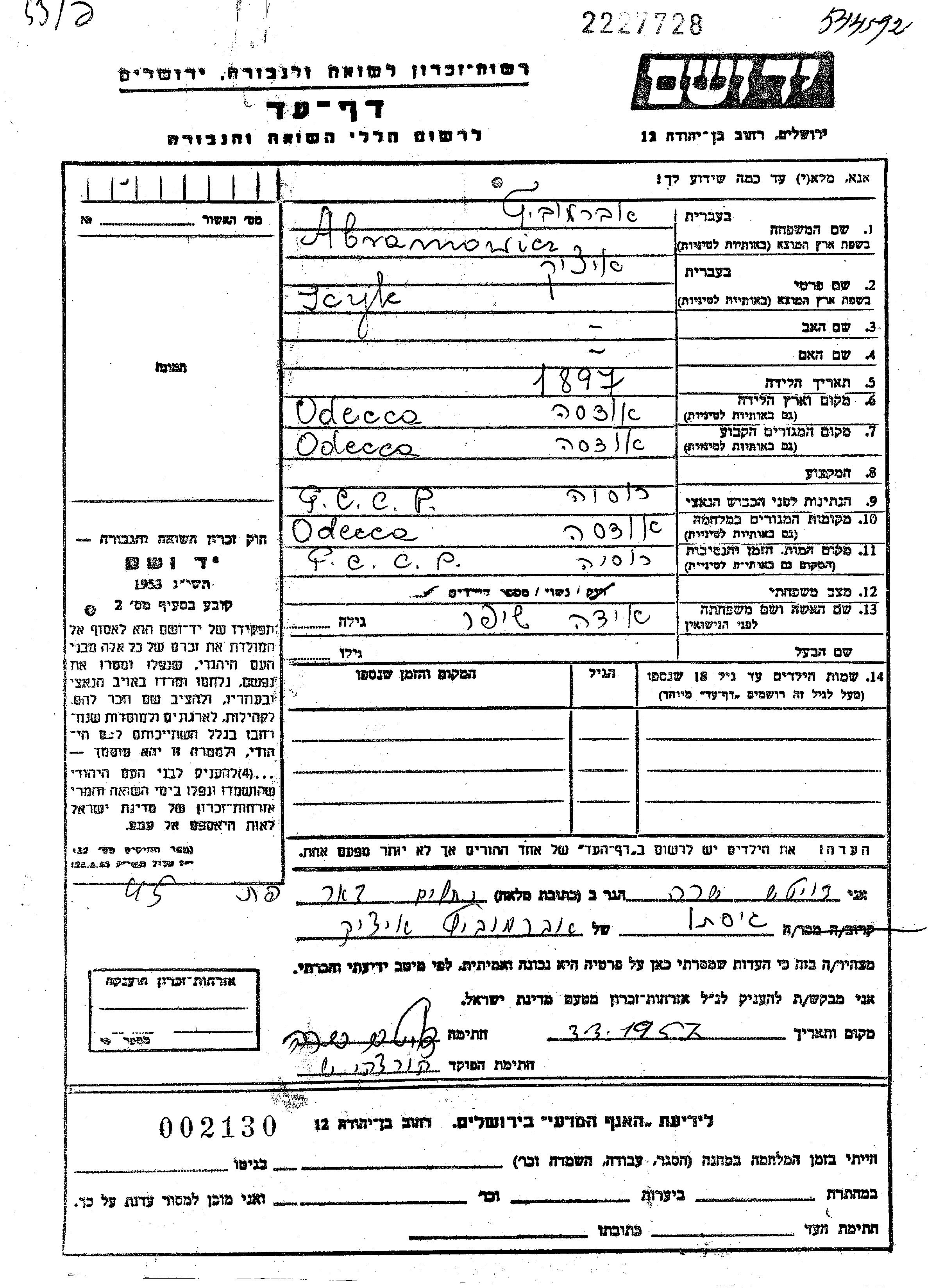 חיפוש שם מוסר דף העד. חיפוש לפי כל שם פרטי, כולל כינוי או שם חיבה
