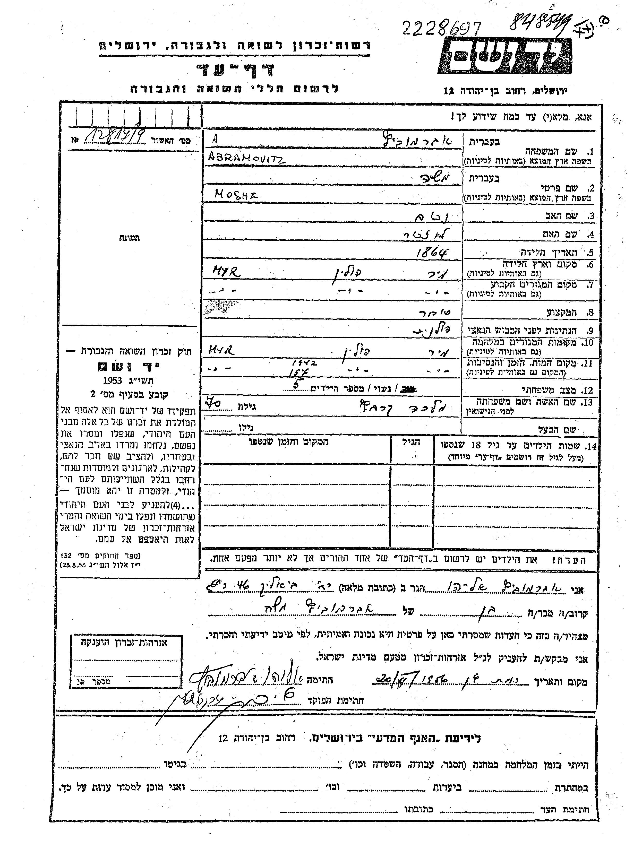 אברמוביץ משה 1864 Mir, פולין דף-עד