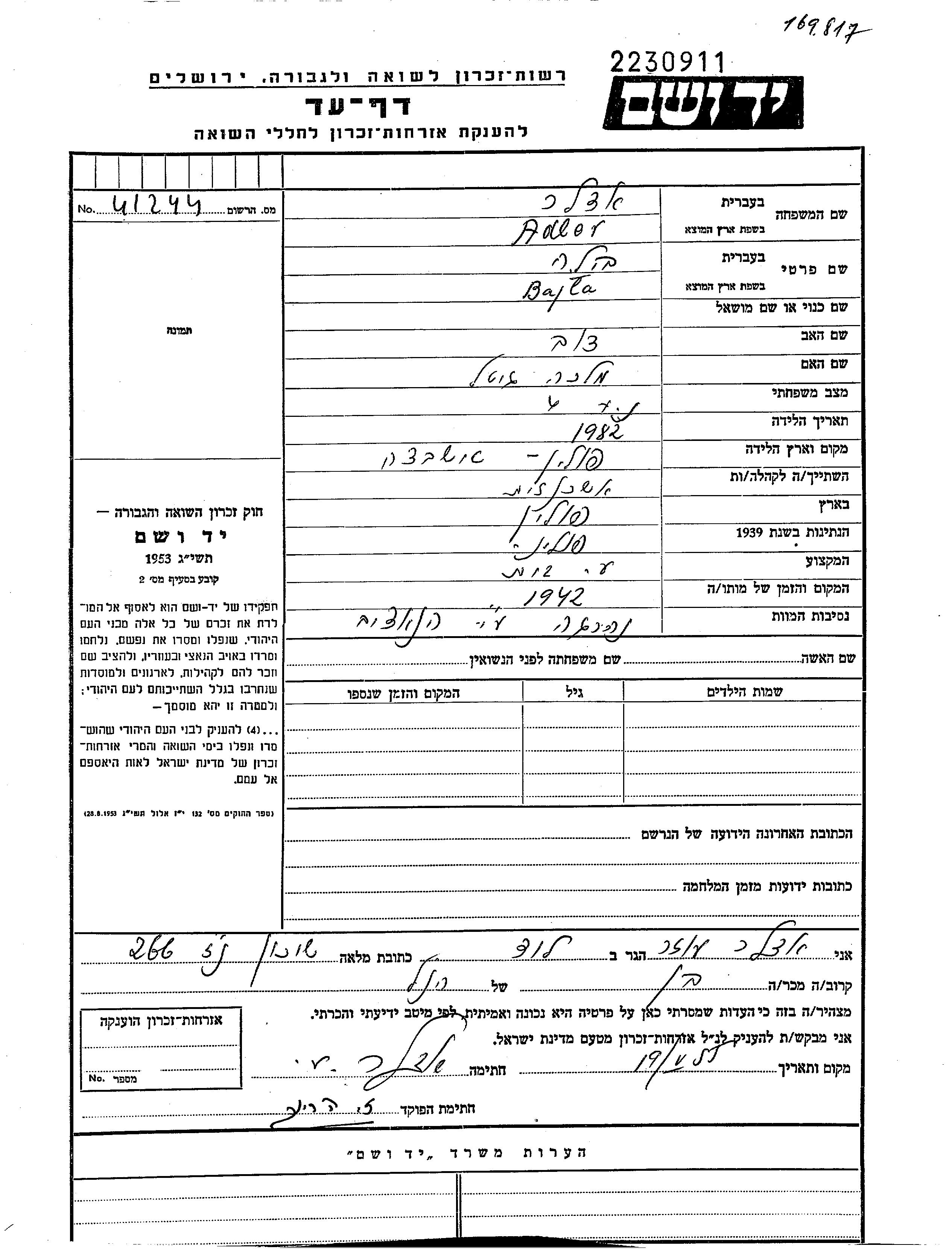 יד ושם - המפעל להנצחת השמות בדפי עד