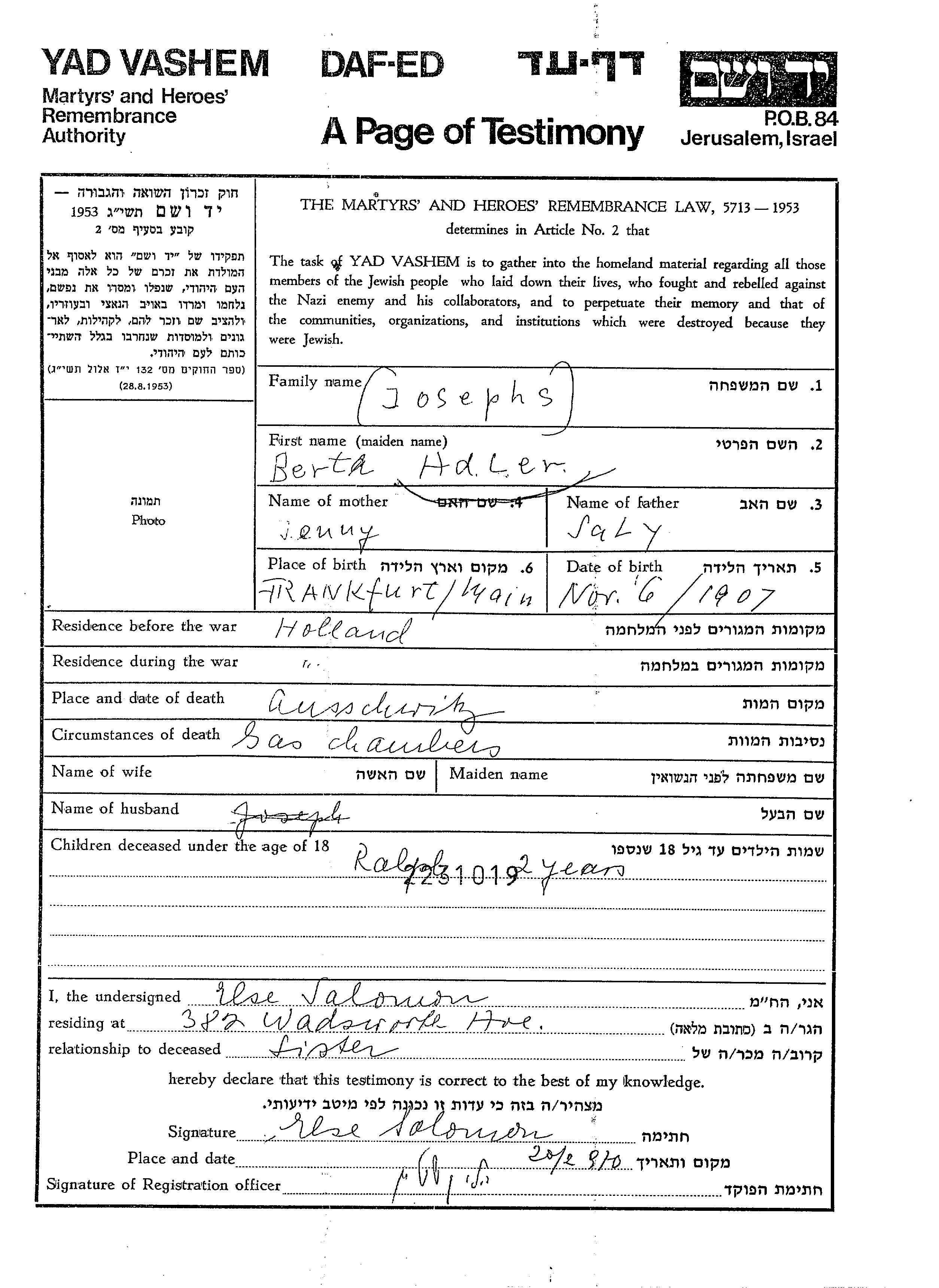 יד ושם - המפעל להנצחת השמות בדפי עד