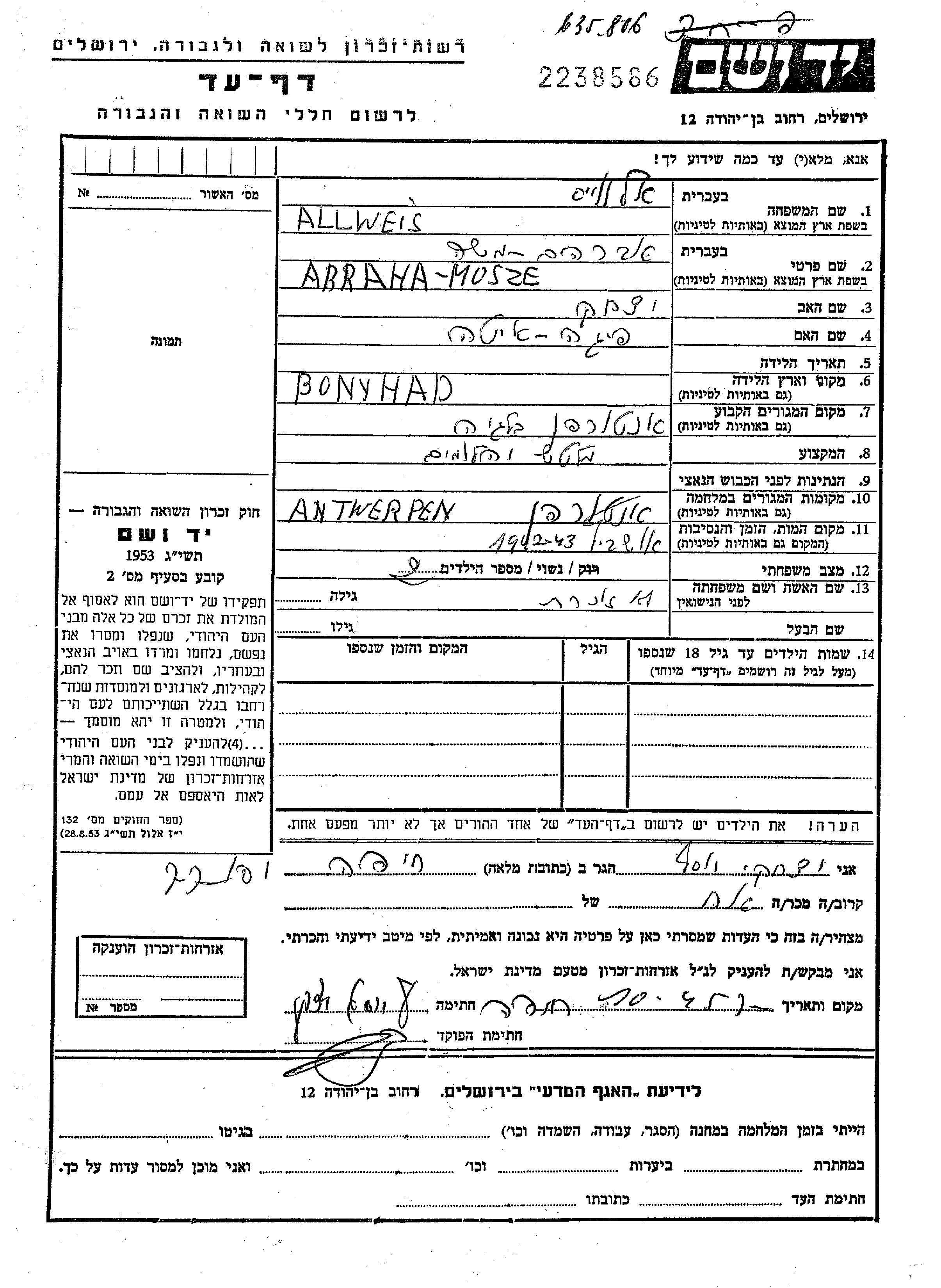 Allweis משה אברהם Antwerpen, בלגיה דף-עד