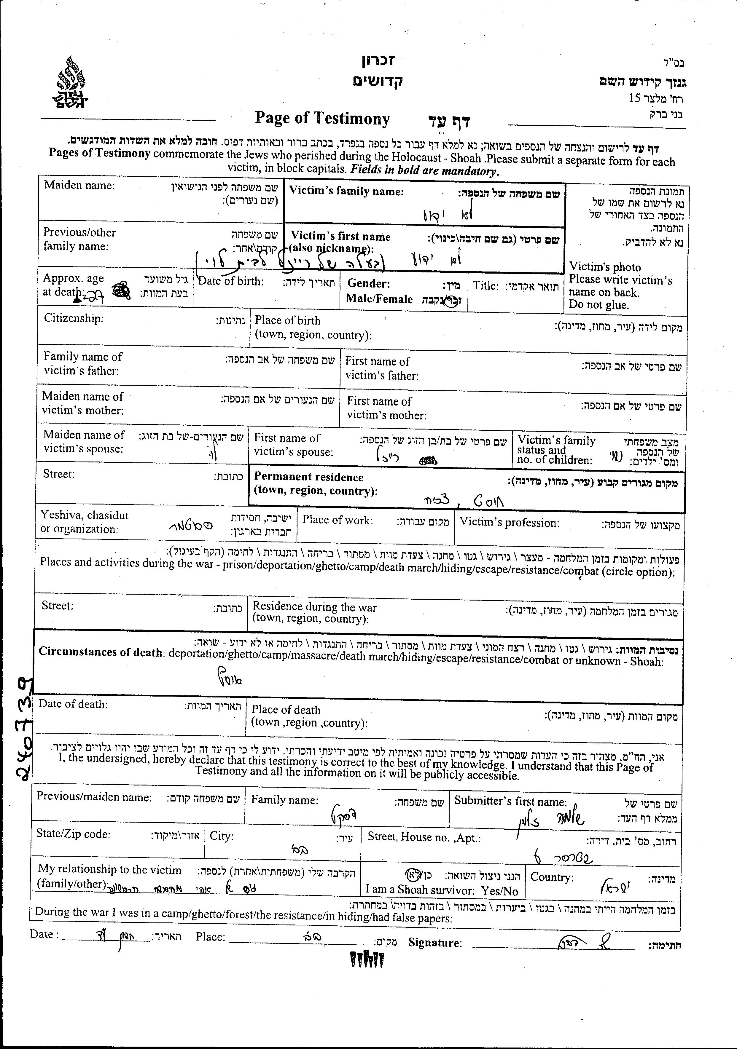 יד ושם - המפעל להנצחת השמות בדפי עד