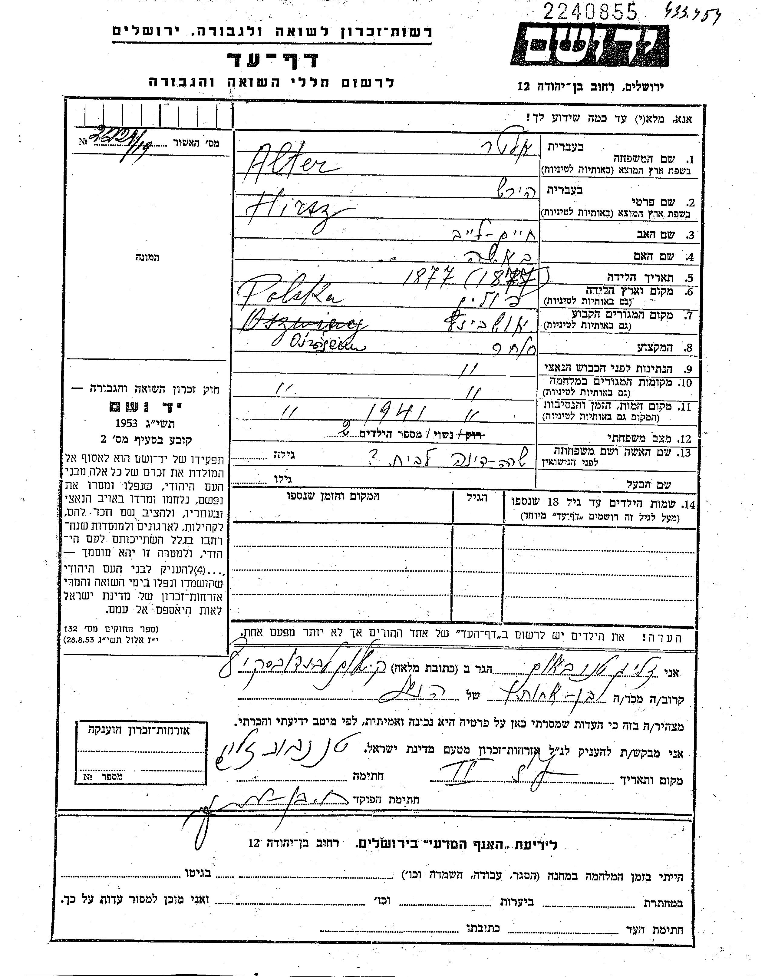 אלטר Hirsz 1877 Oświęcim, פולין דף-עד