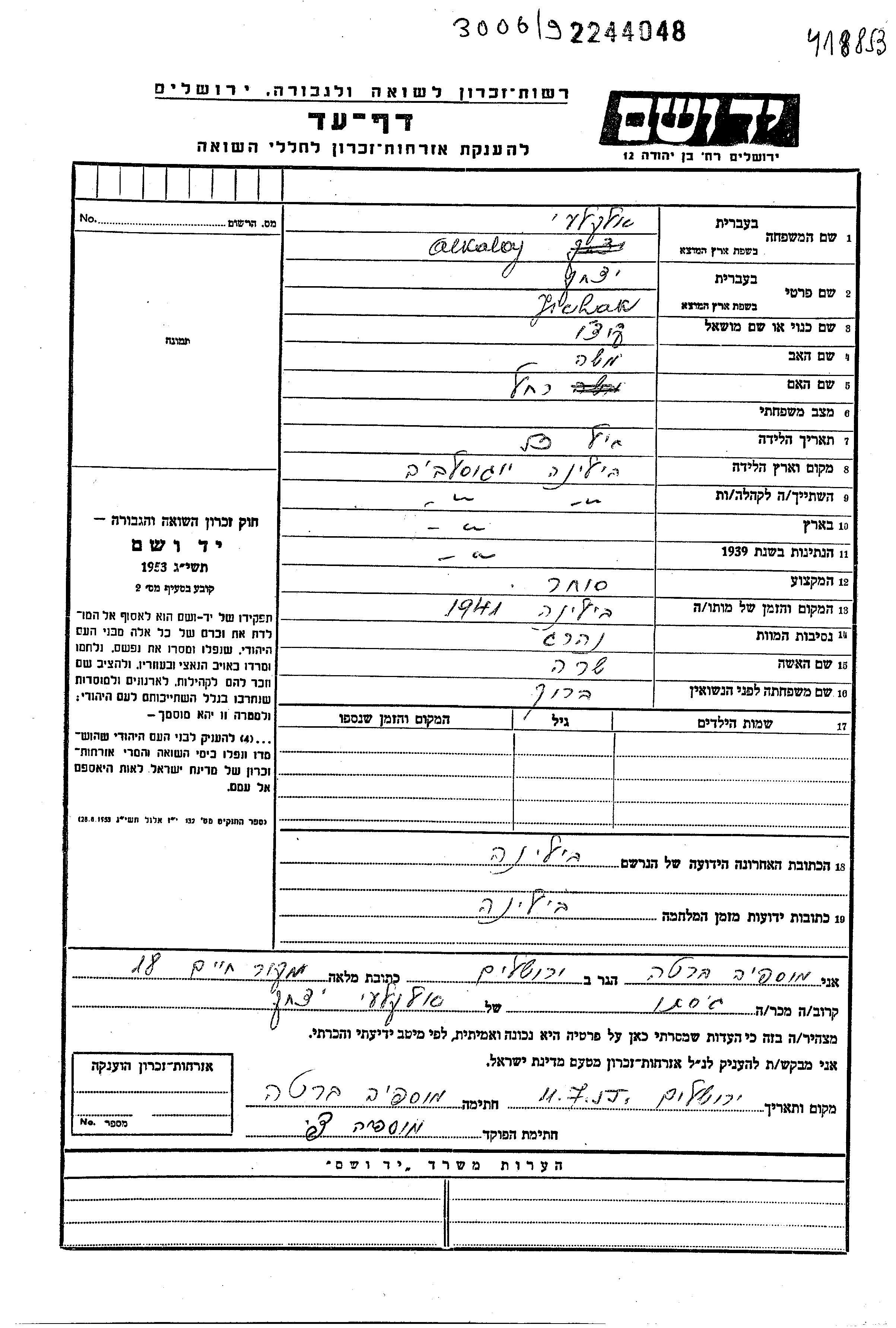 יד ושם - המפעל להנצחת השמות בדפי עד