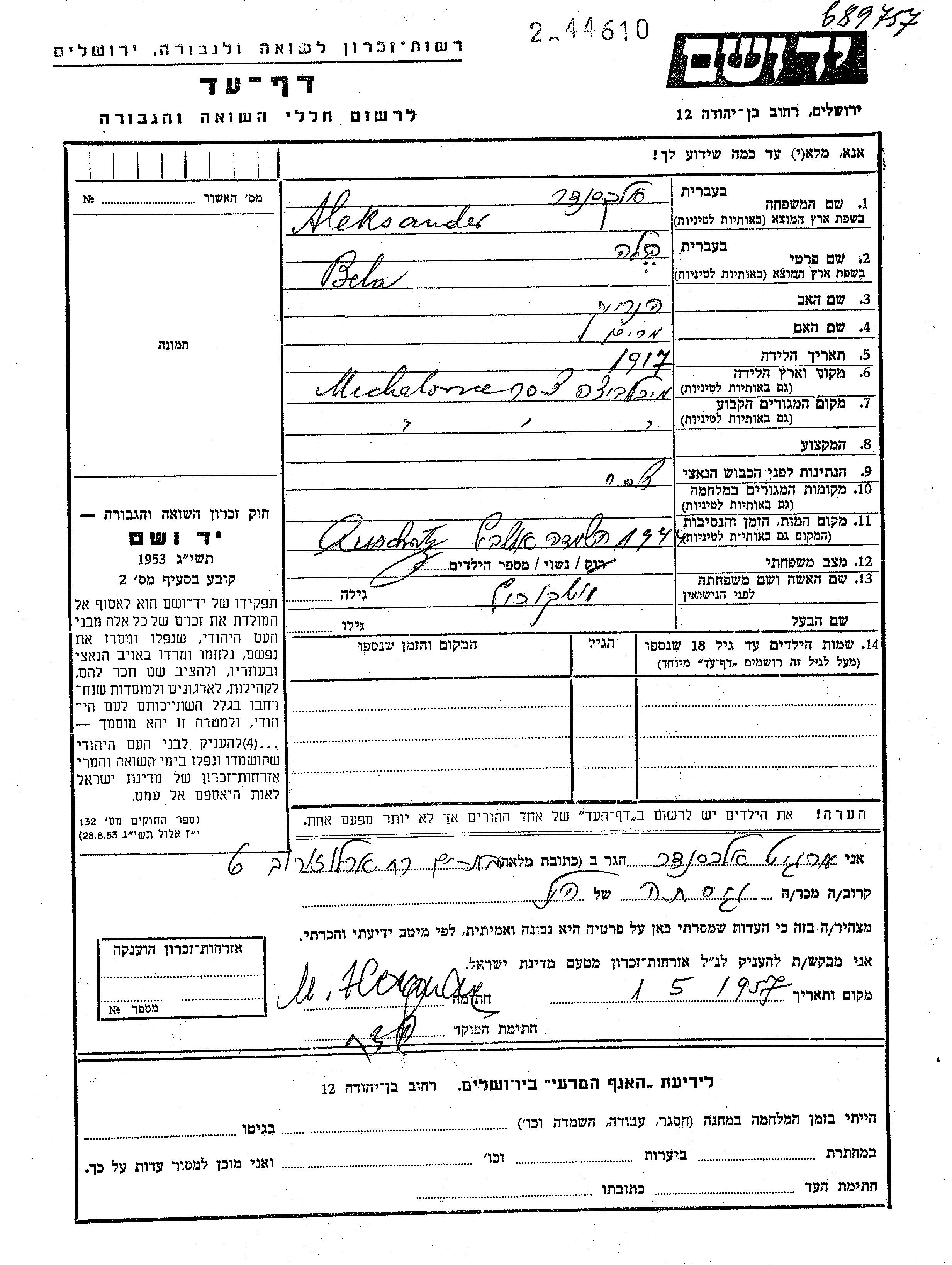 יד ושם - המפעל להנצחת השמות בדפי עד