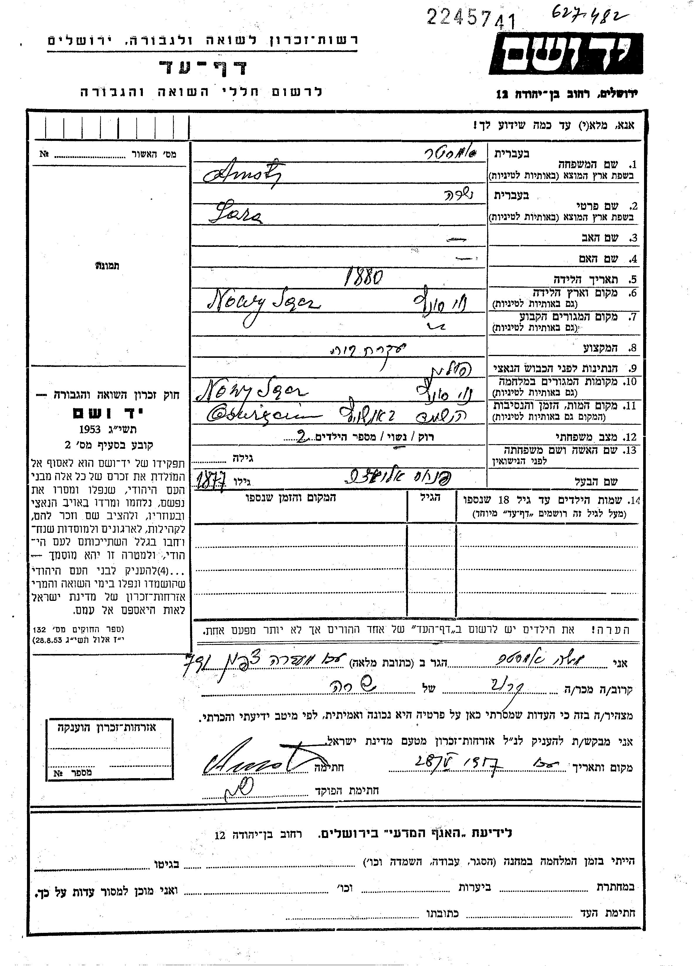 יד ושם - המפעל להנצחת השמות בדפי עד
