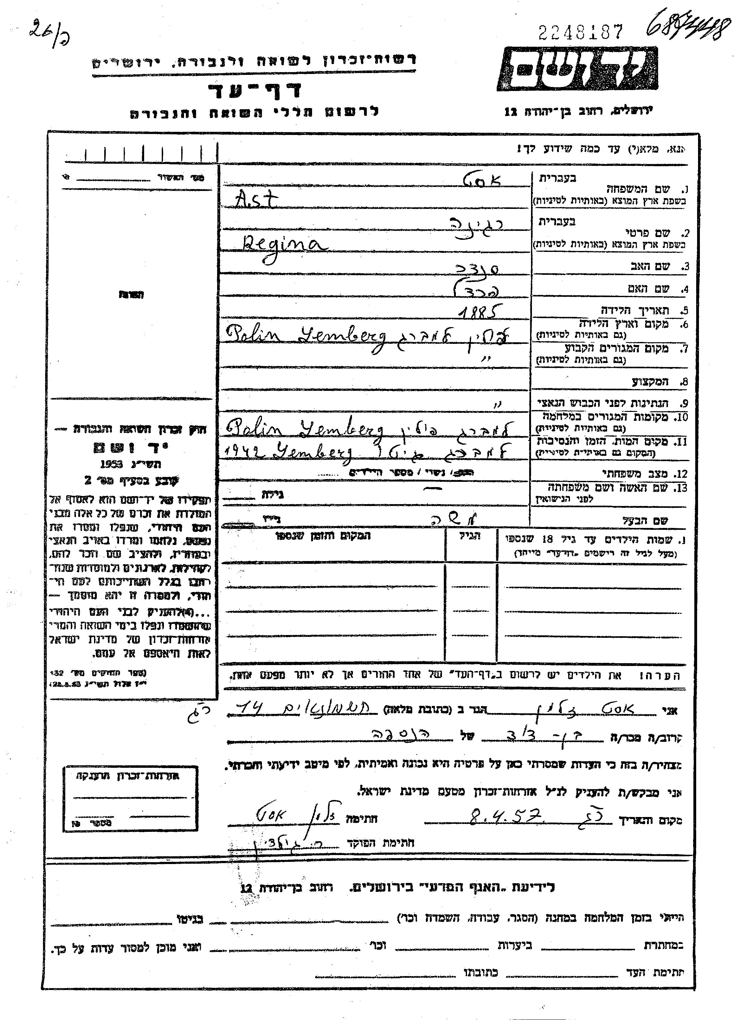 אסט רגינה 1885 Lemberg, פולין דף-עד