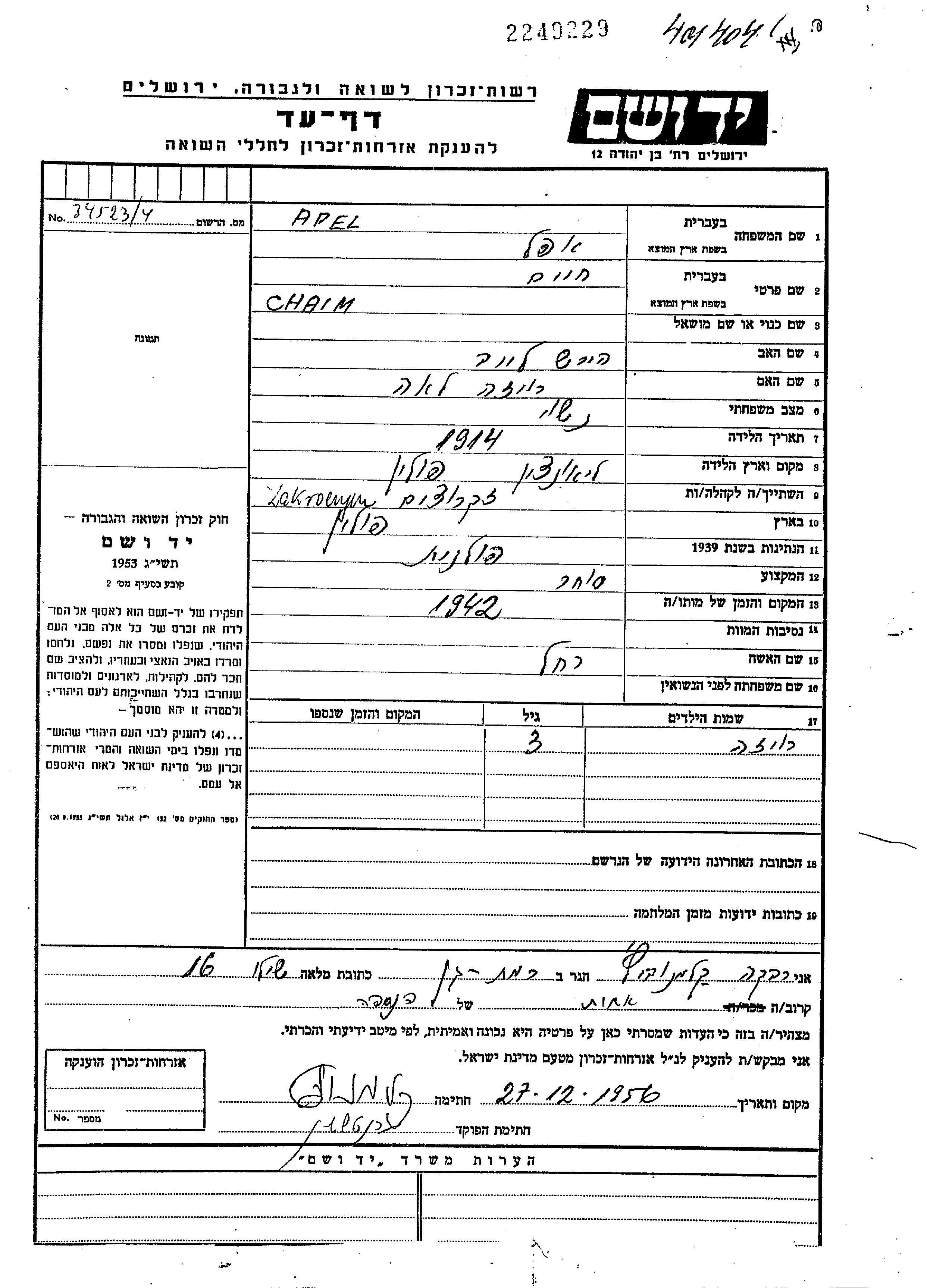Roize אפל נולדה בWarszawa שבפולין לחיים ורחל. היא היתה ילדה. לפני מלחמת העולם השניה התגוררה בZakroczyn שבפולין. בזמן המלחמה היא היתה בפולין. היא נרצחה בשואה.