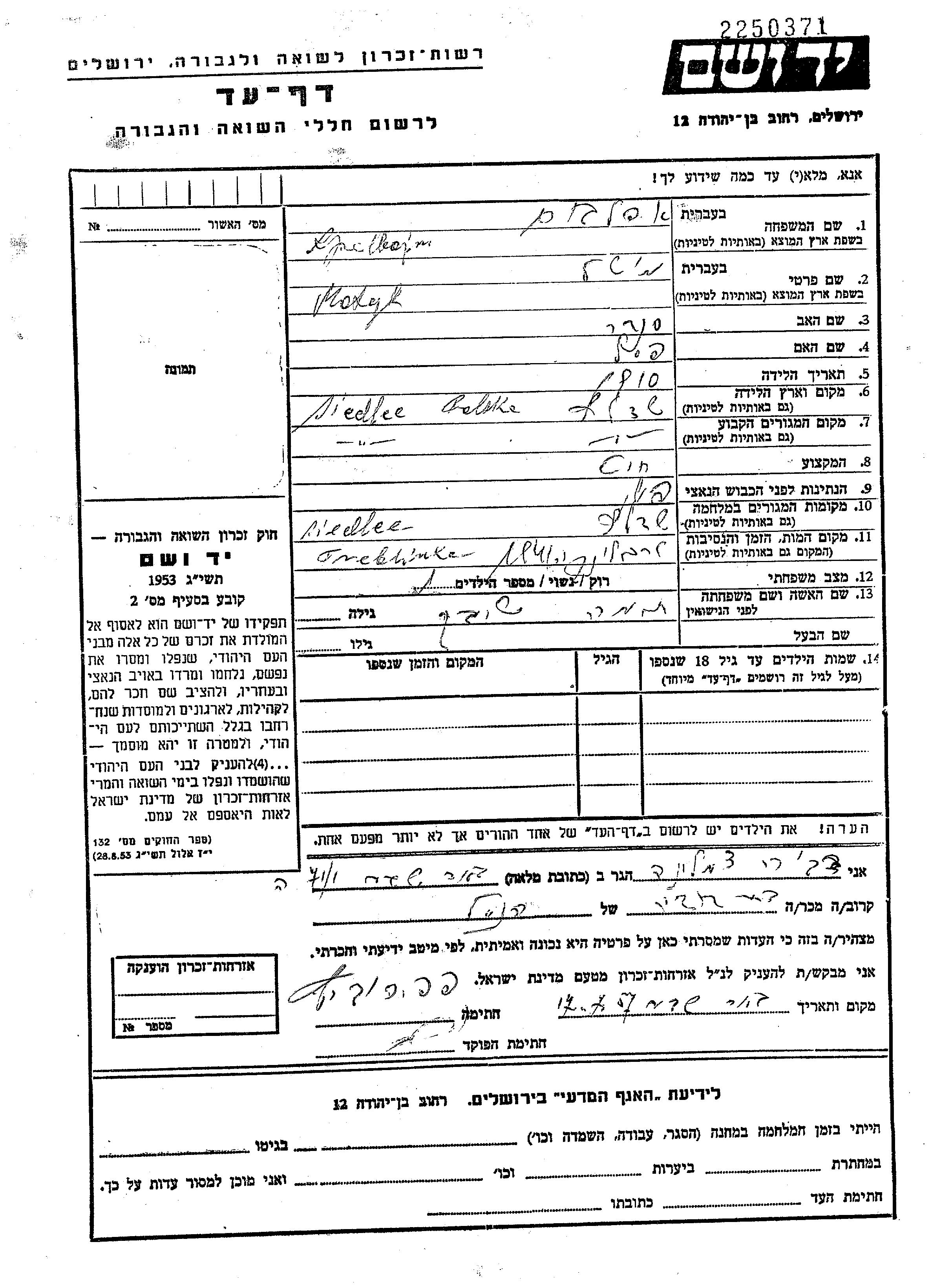 חיפוש שם מוסר דף העד. חיפוש לפי כל שם פרטי, כולל כינוי או שם חיבה