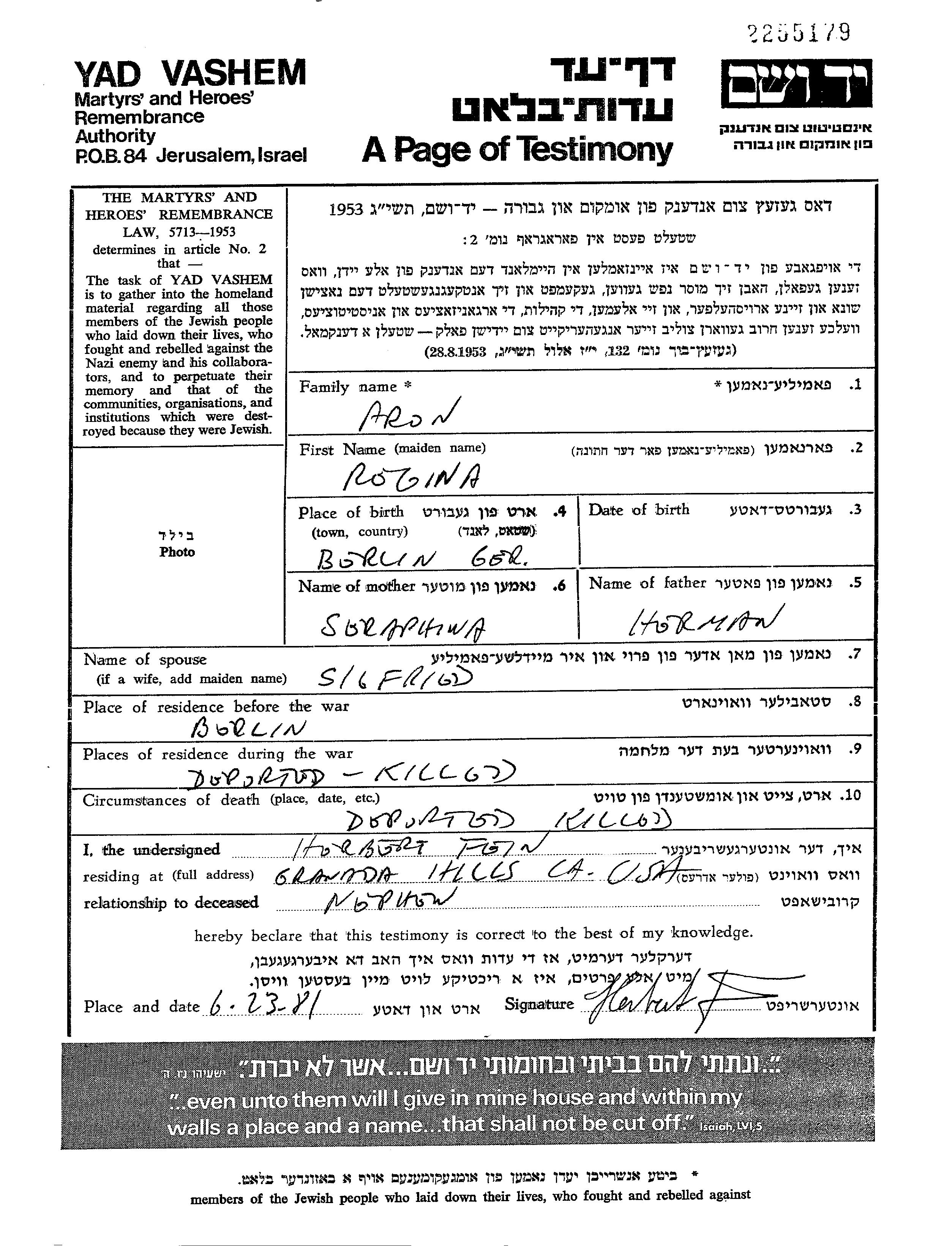 יד ושם - המפעל להנצחת השמות בדפי עד
