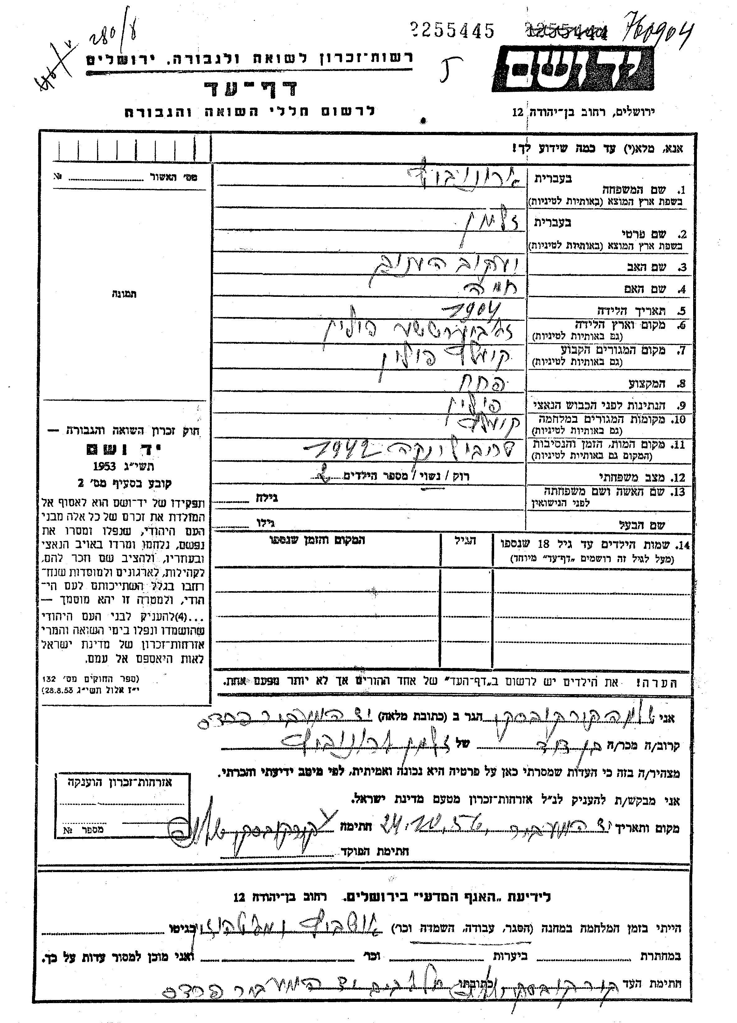 יד ושם - המפעל להנצחת השמות בדפי עד