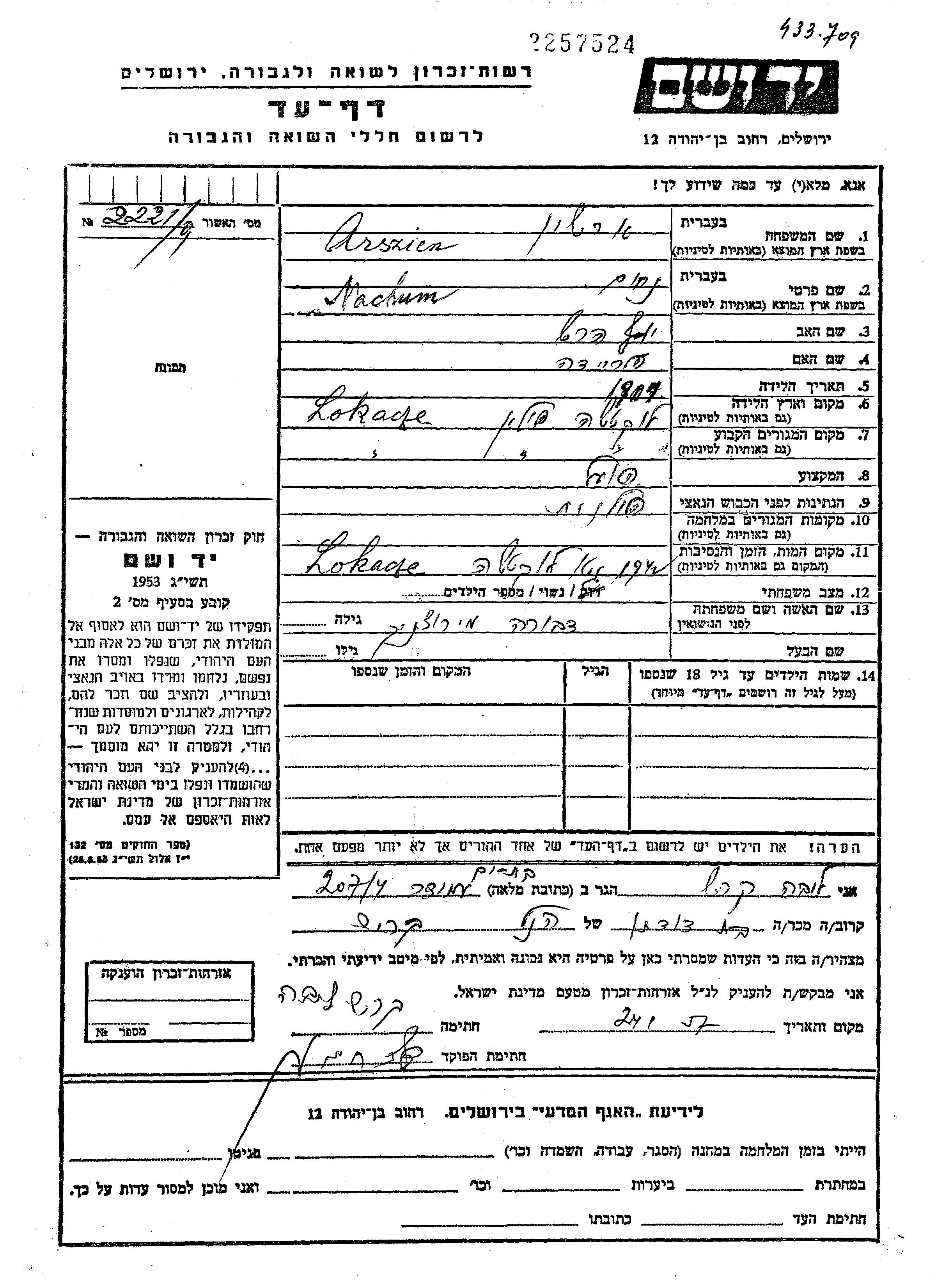 Arszin Nachum 1901 Lokacze, פולין דף-עד