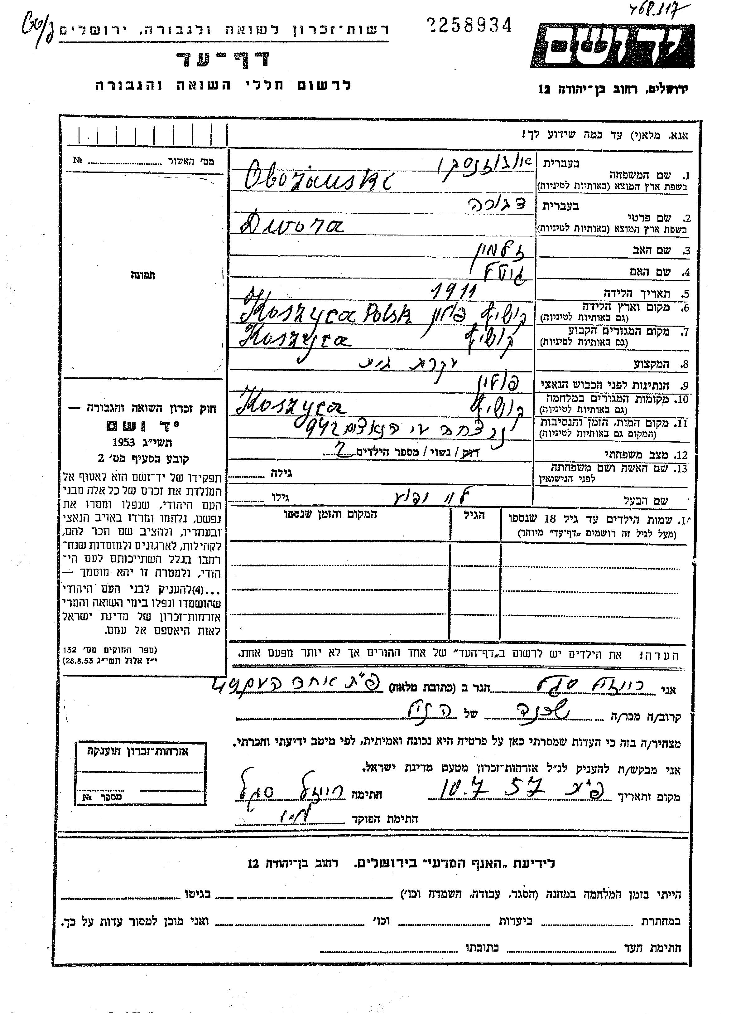 שם משפחה לא ידוע Dwora 1911 Koszyce, פולין דף-עד