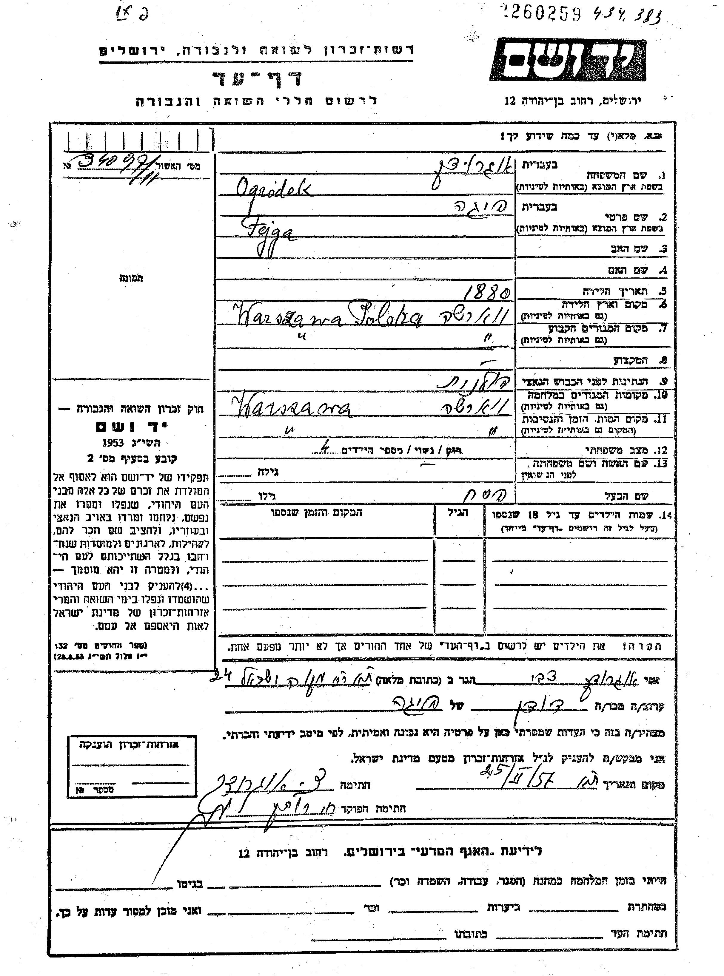 יד ושם - המפעל להנצחת השמות בדפי עד