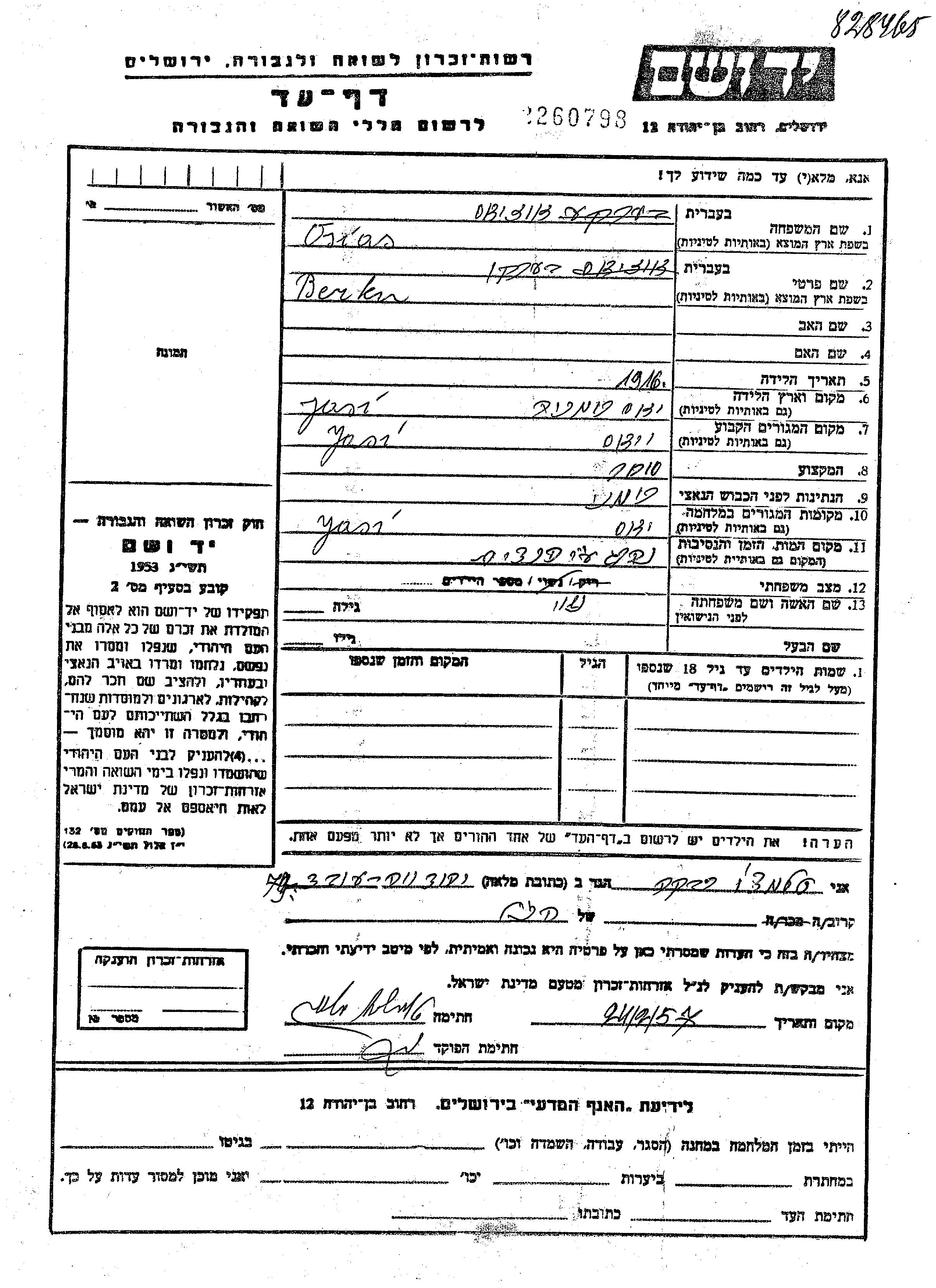 חיפוש שם מוסר דף העד. חיפוש לפי כל שם פרטי, כולל כינוי או שם חיבה