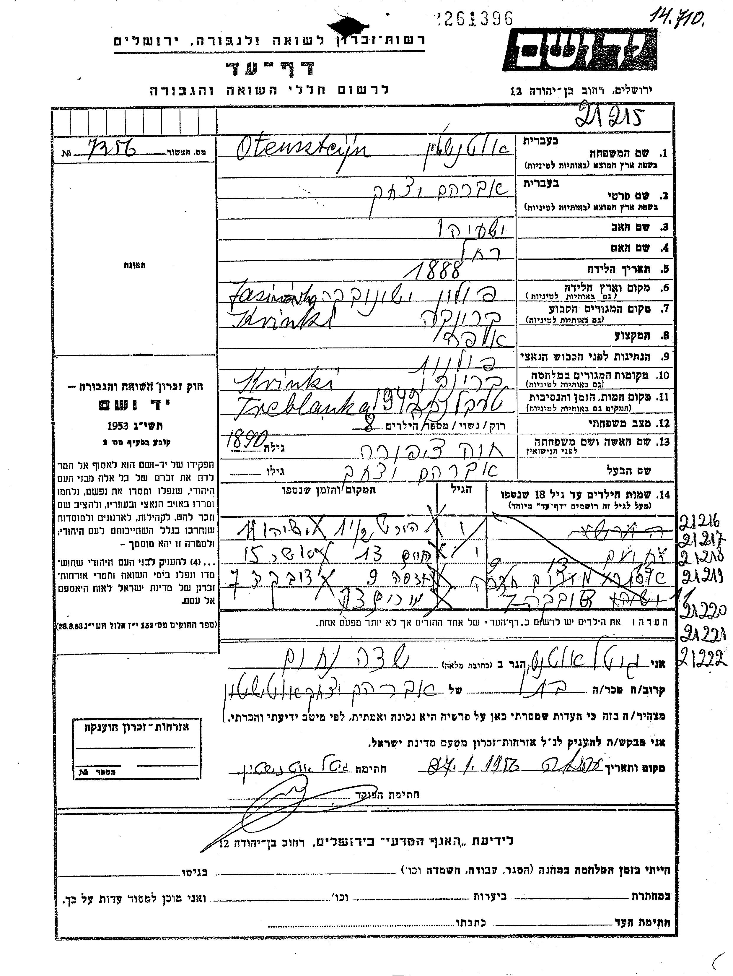 יד ושם - המפעל להנצחת השמות בדפי עד