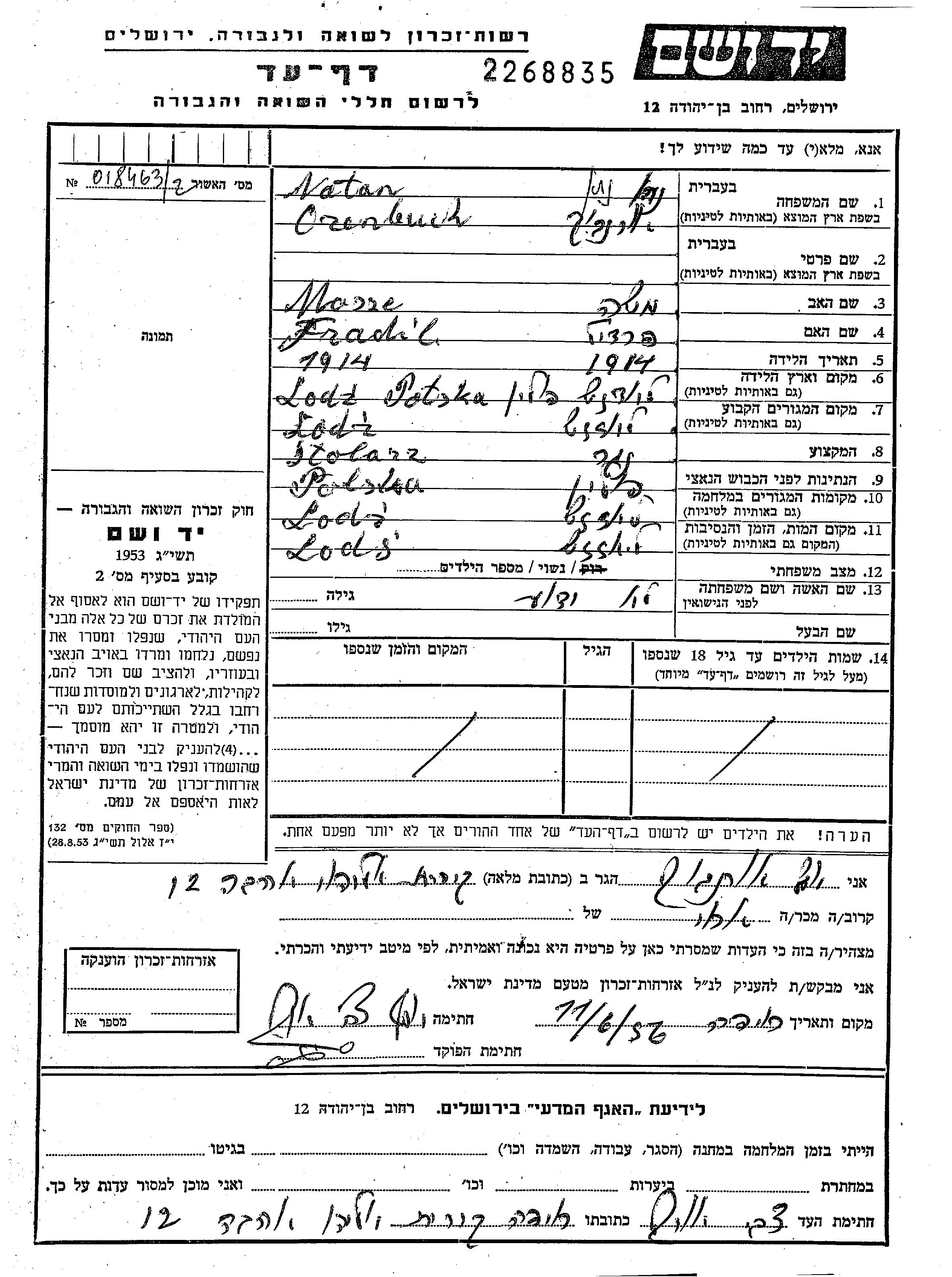 יד ושם - המפעל להנצחת השמות בדפי עד