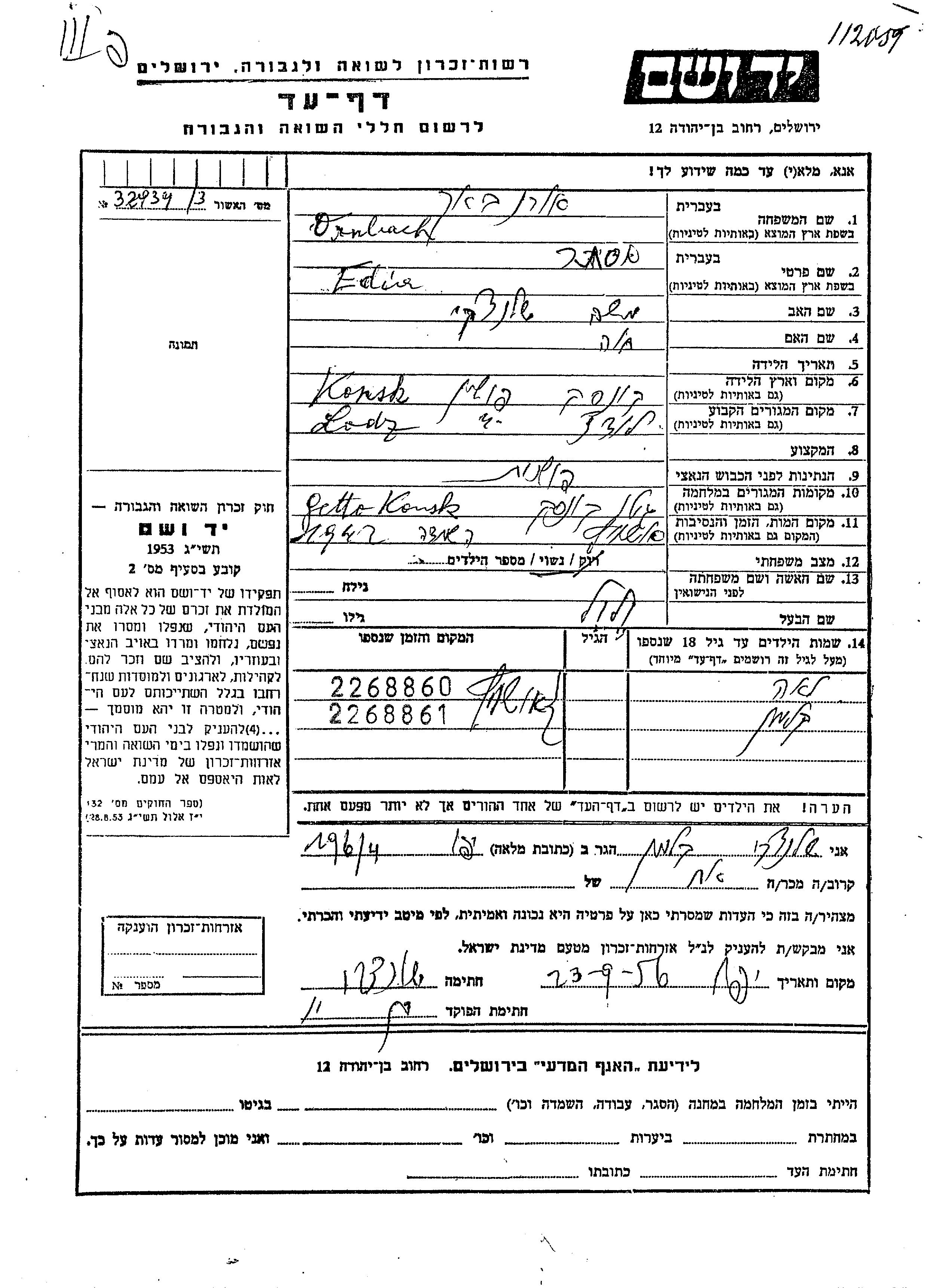 יד ושם - המפעל להנצחת השמות בדפי עד
