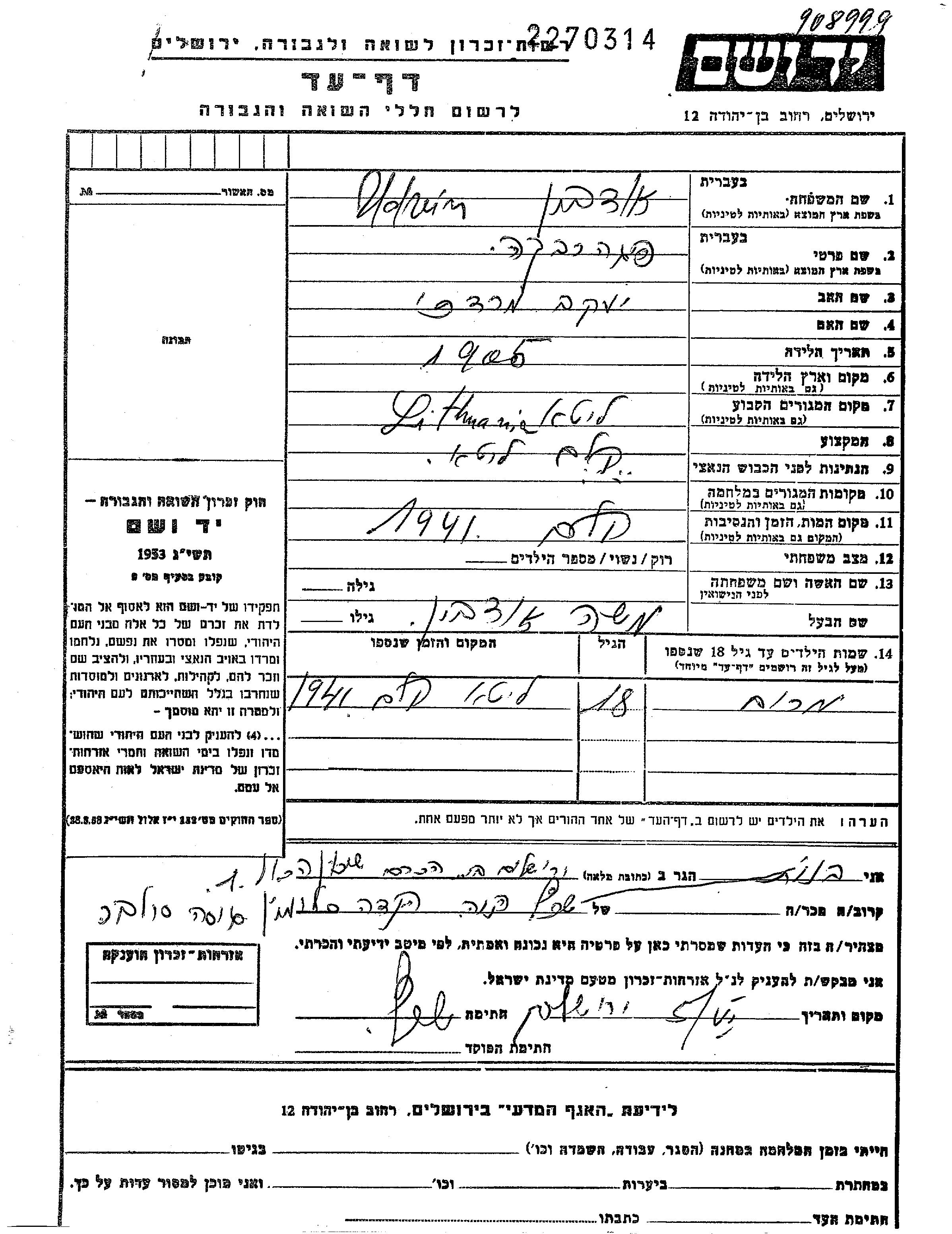 יד ושם - המפעל להנצחת השמות בדפי עד