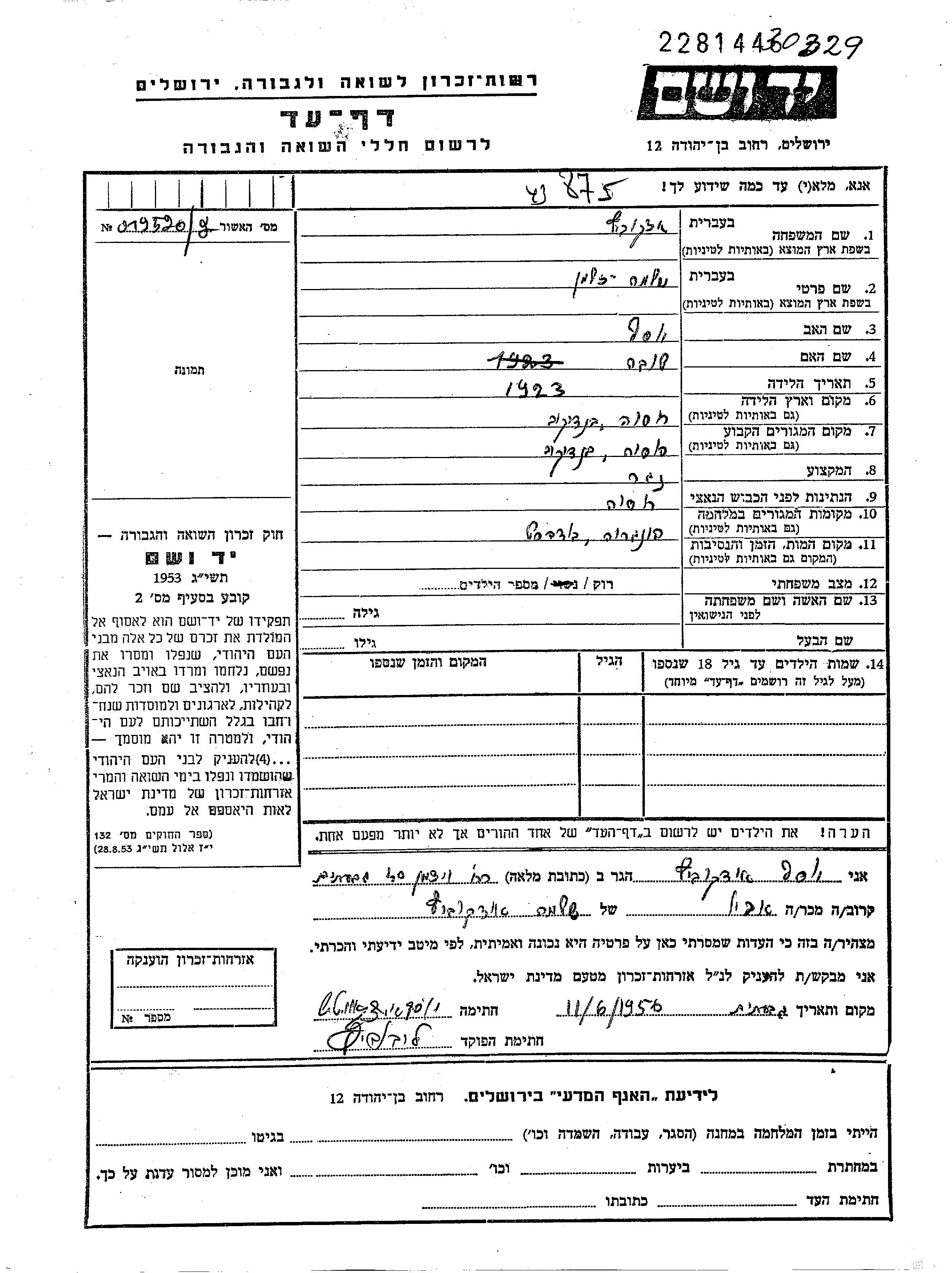 חיפוש שם מוסר דף העד. חיפוש לפי כל שם פרטי, כולל כינוי או שם חיבה