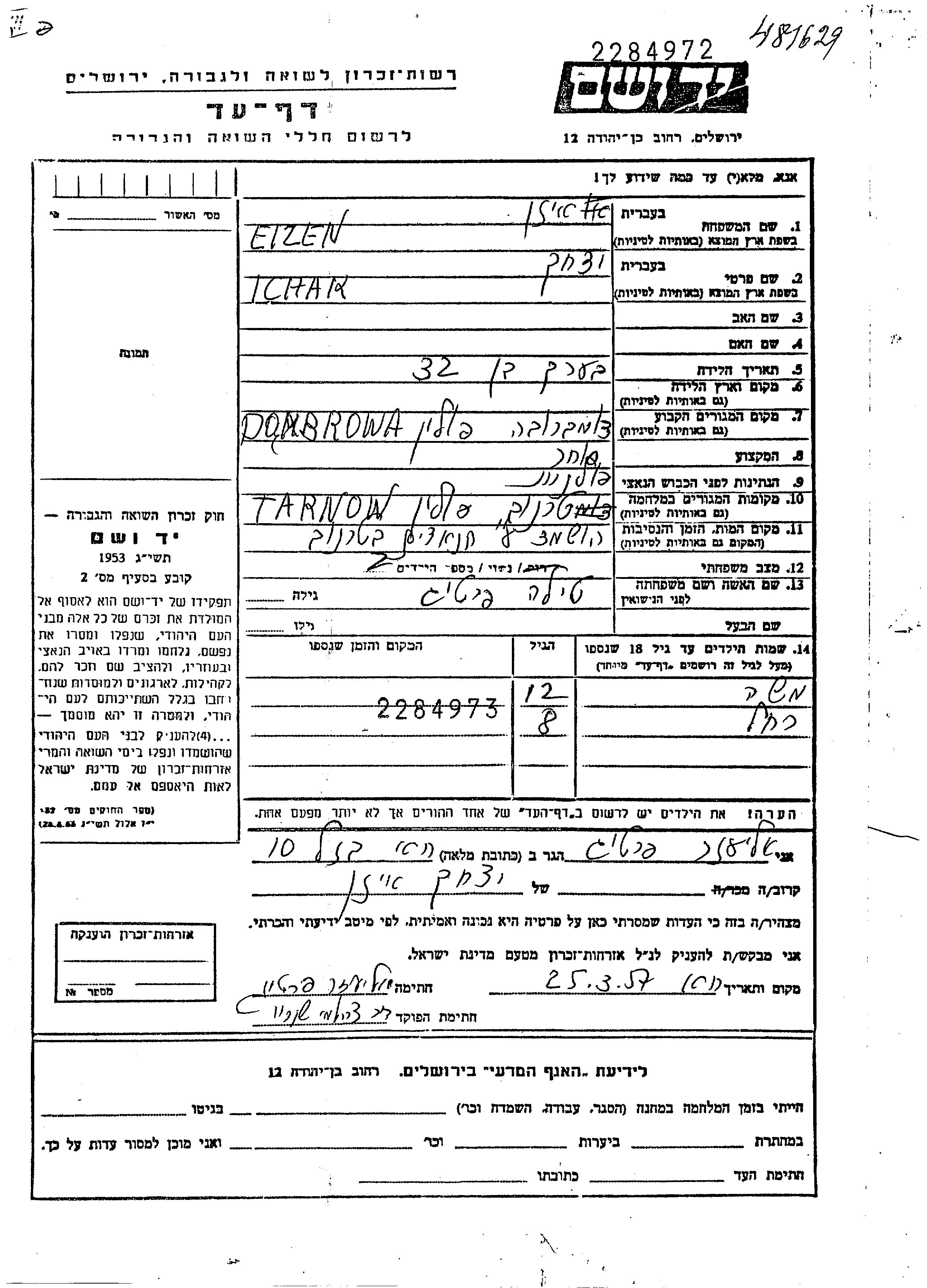 משה אייזן נולד בפולין לIchak וTila לבית פרטיג. הוא היה ילד. לפני מלחמת העולם השניה התגורר בDabrowa Tarnowska שבפולין. בזמן המלחמה הוא היה בTarnow שבפולין. משה נרצח בשואה.