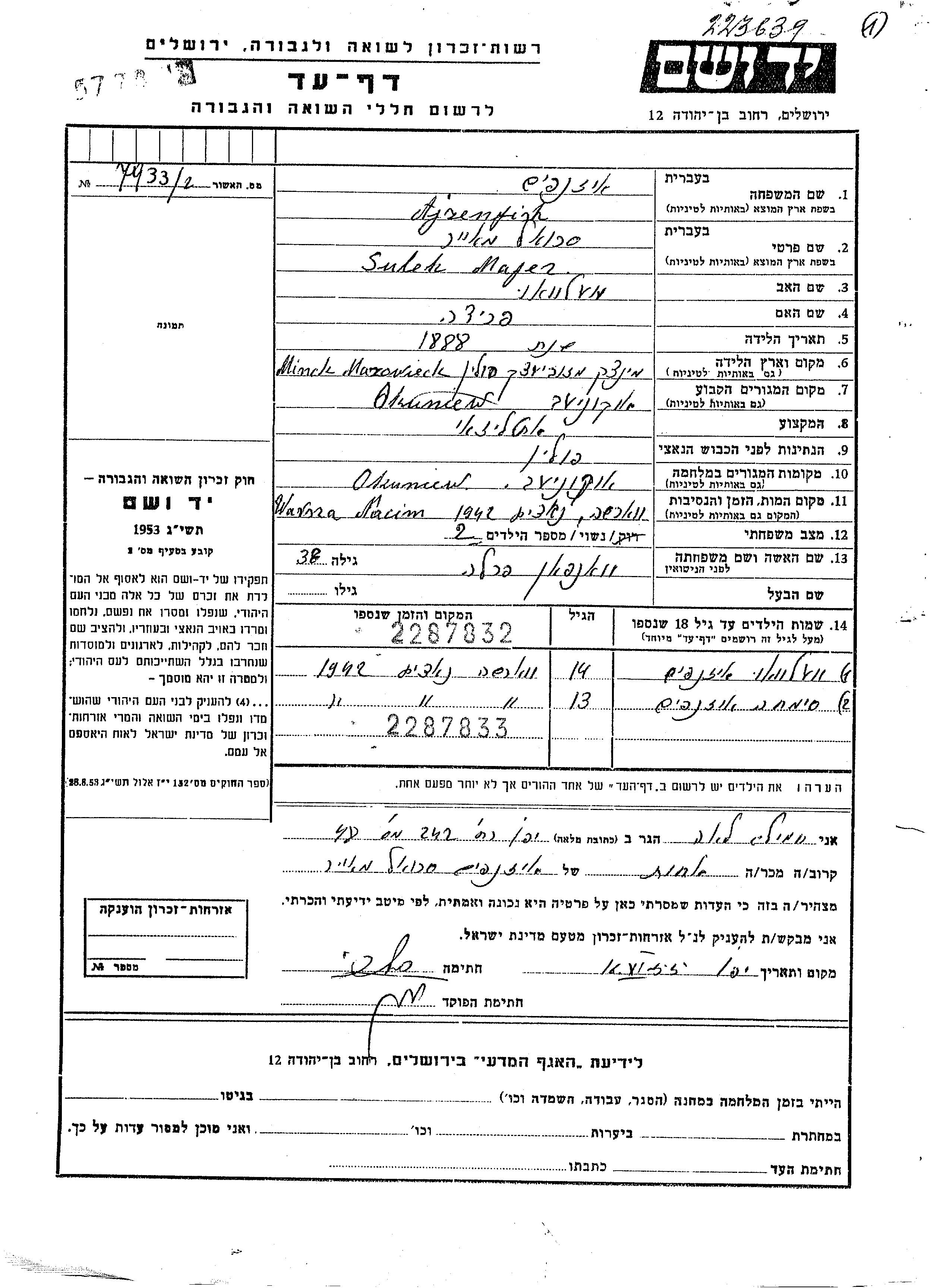יד ושם - המפעל להנצחת השמות בדפי עד
