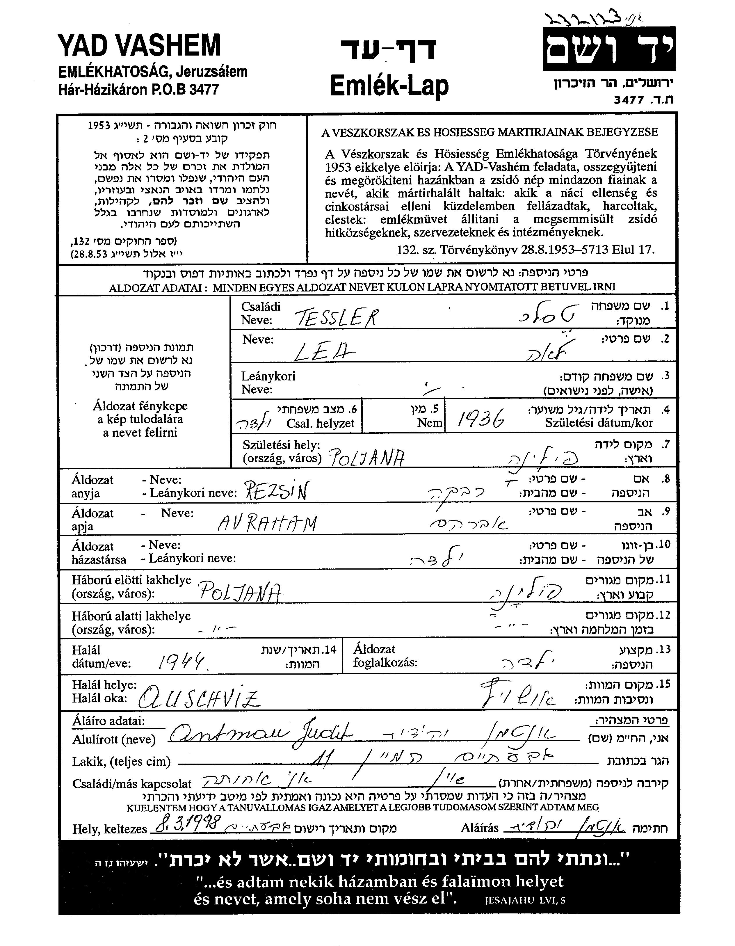 Tessler לאה 1936 Polany, צ'כוסלובקיה דף-עד