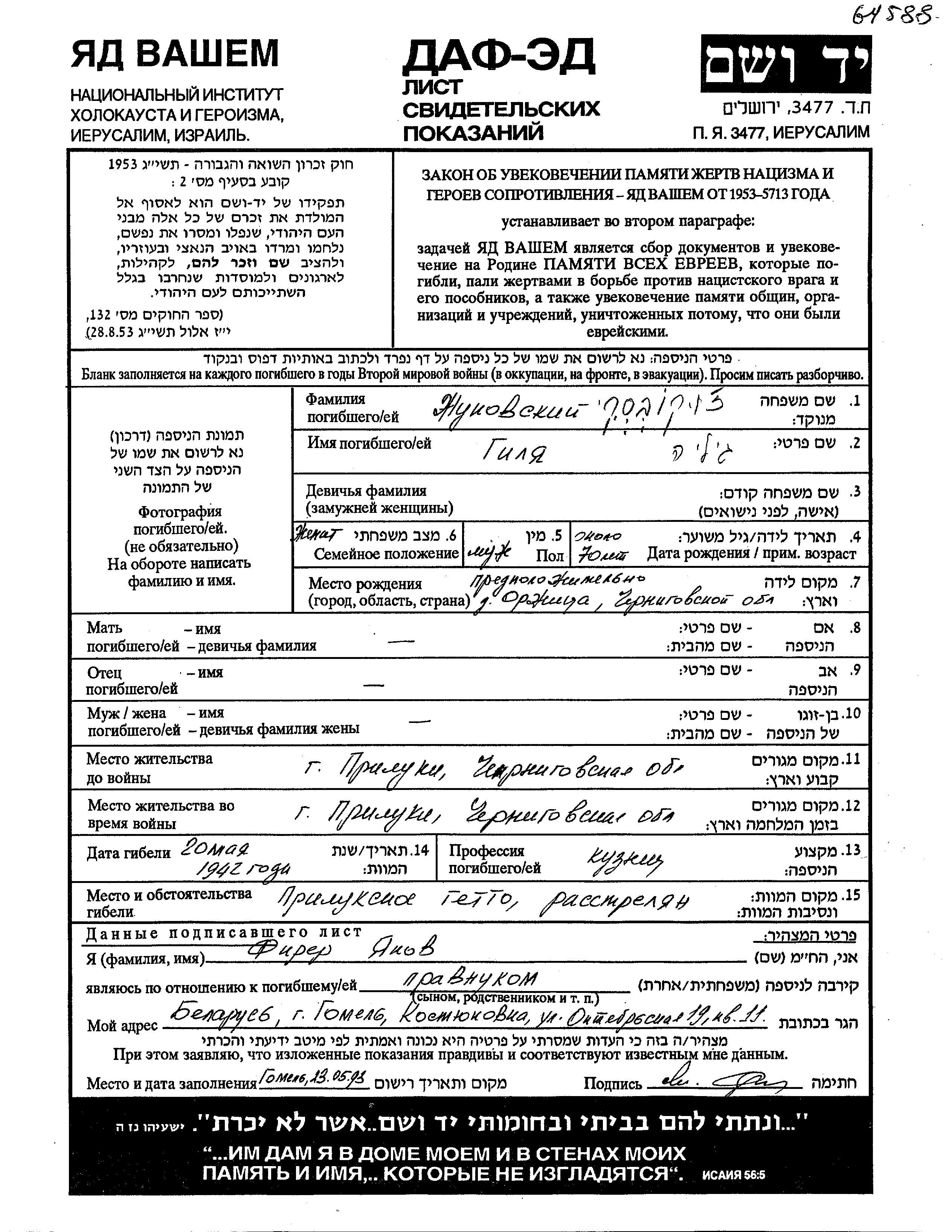 יד ושם - המפעל להנצחת השמות בדפי עד
