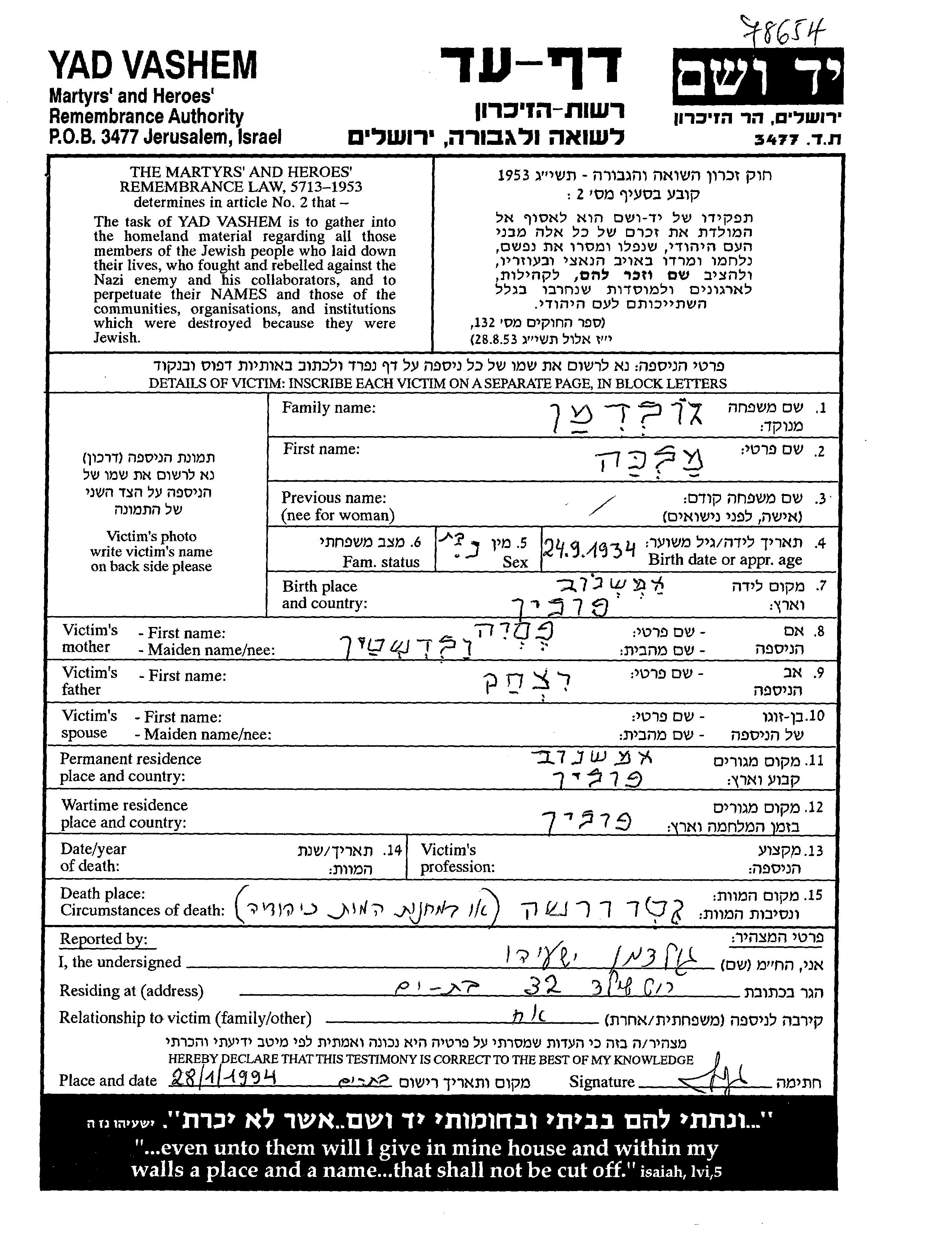 יד ושם - המפעל להנצחת השמות בדפי עד