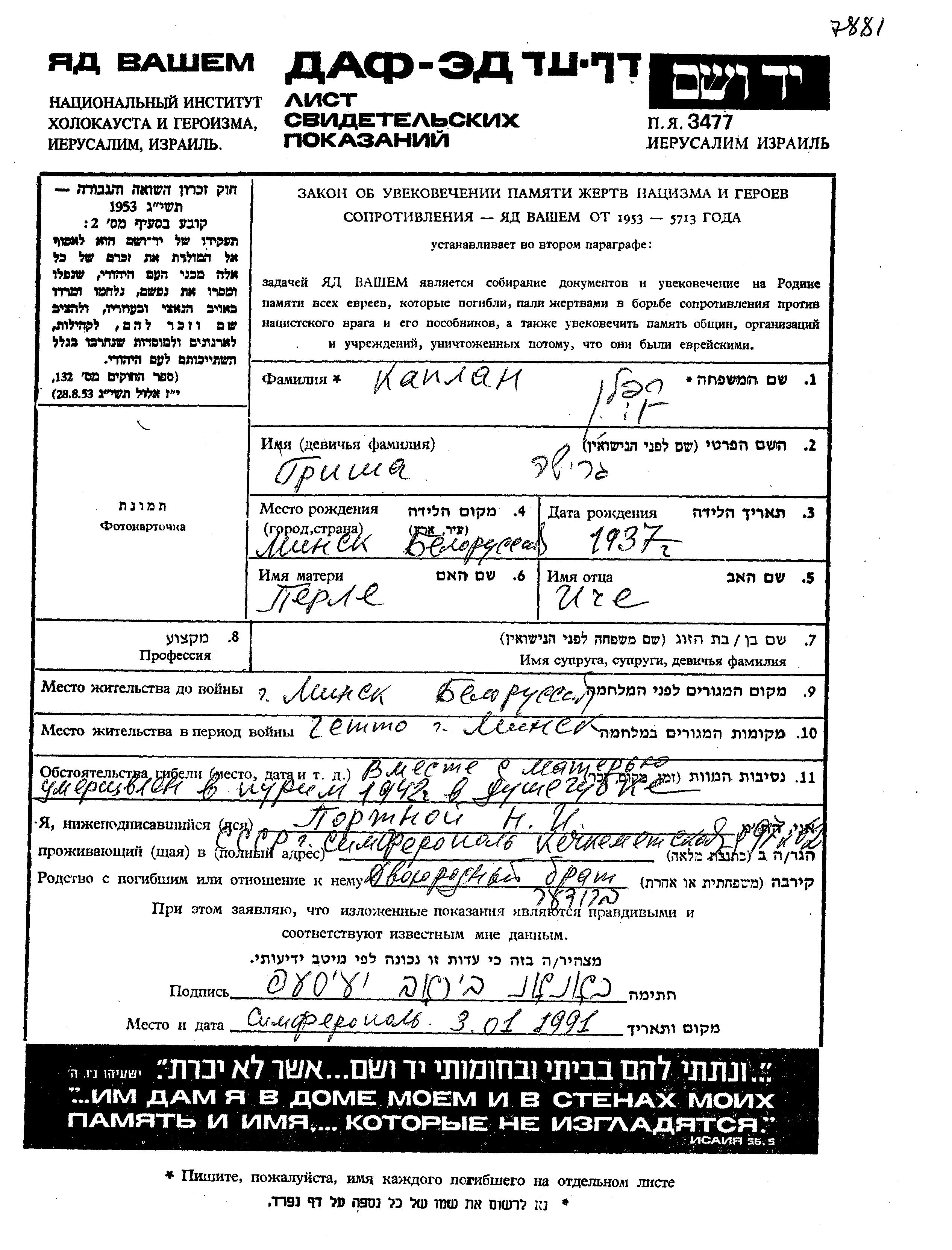 חיפוש שם מוסר דף העד. חיפוש לפי כל שם פרטי, כולל כינוי או שם חיבה