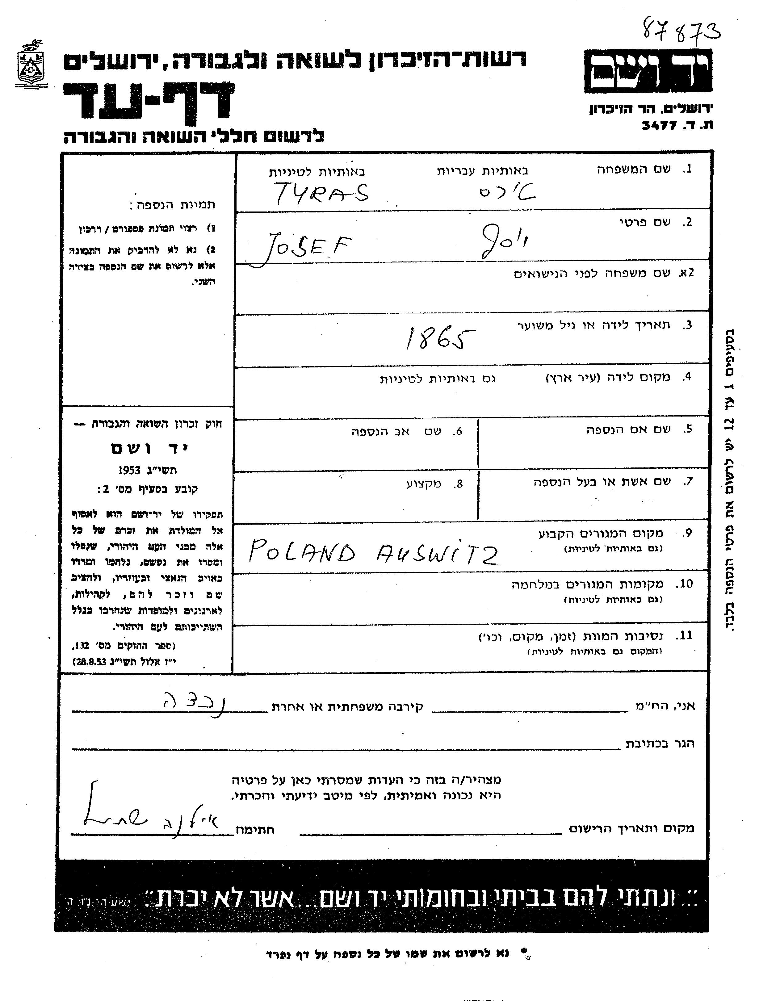 עיר/כפר, גטו/מחנה או אתר רצח או מחוז/אזור או מדינה. שם מקום ניתן לחפש רק בא-ב לטיני.