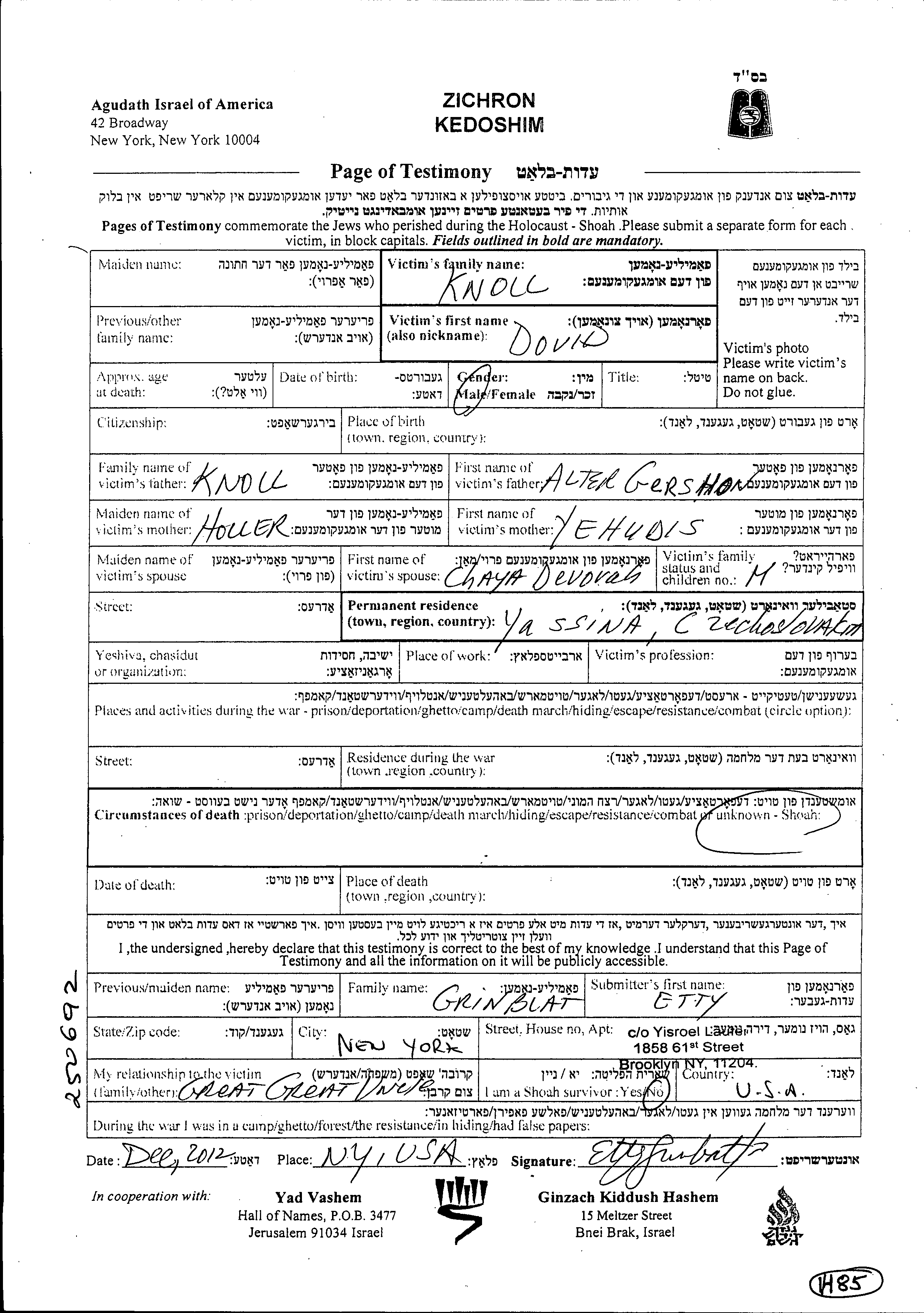 שמות נרדפים ושמות קשורים © מאז 2004. יד ושם. כל הזכויות שמורות.