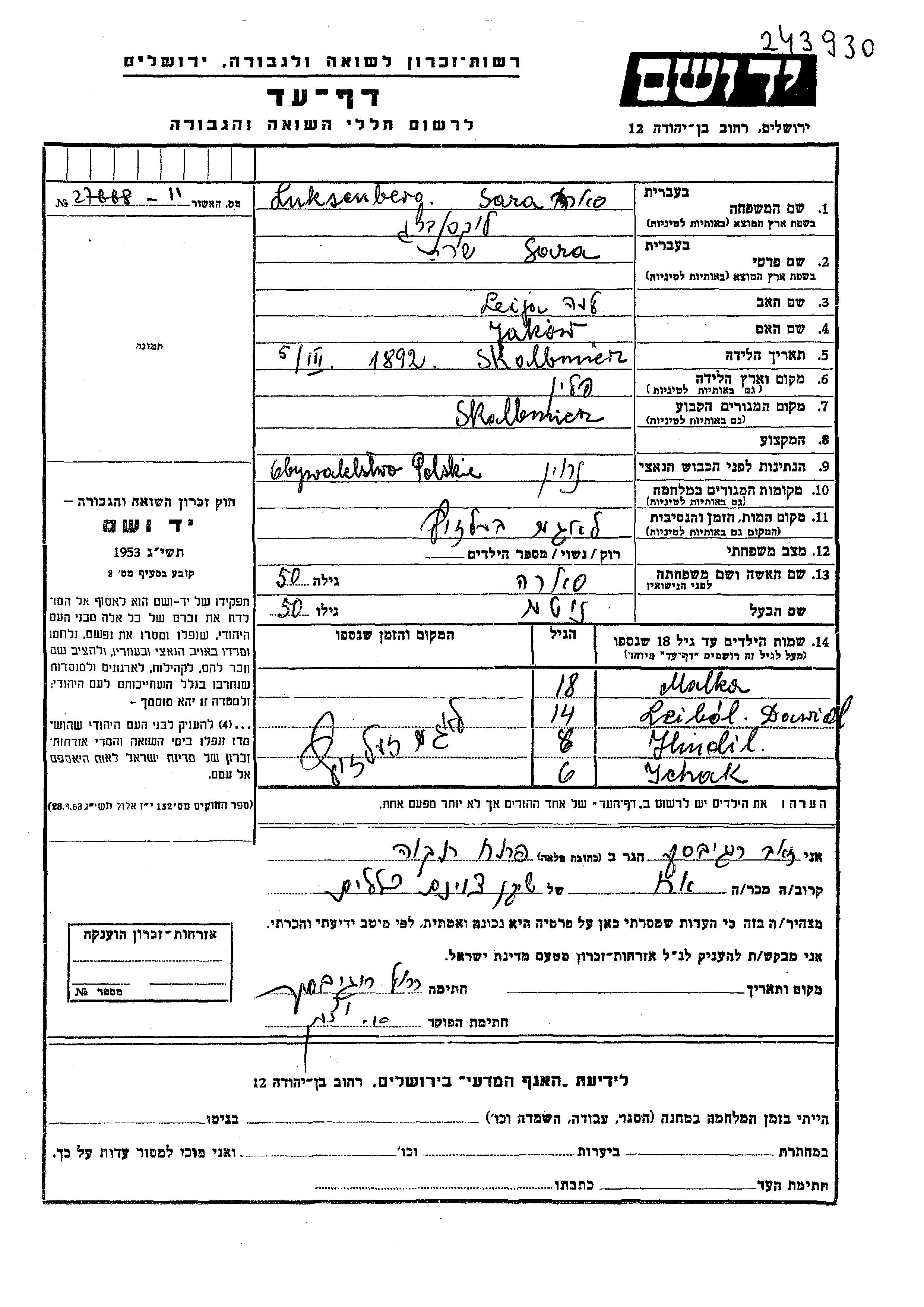 יד ושם - המפעל להנצחת השמות בדפי עד