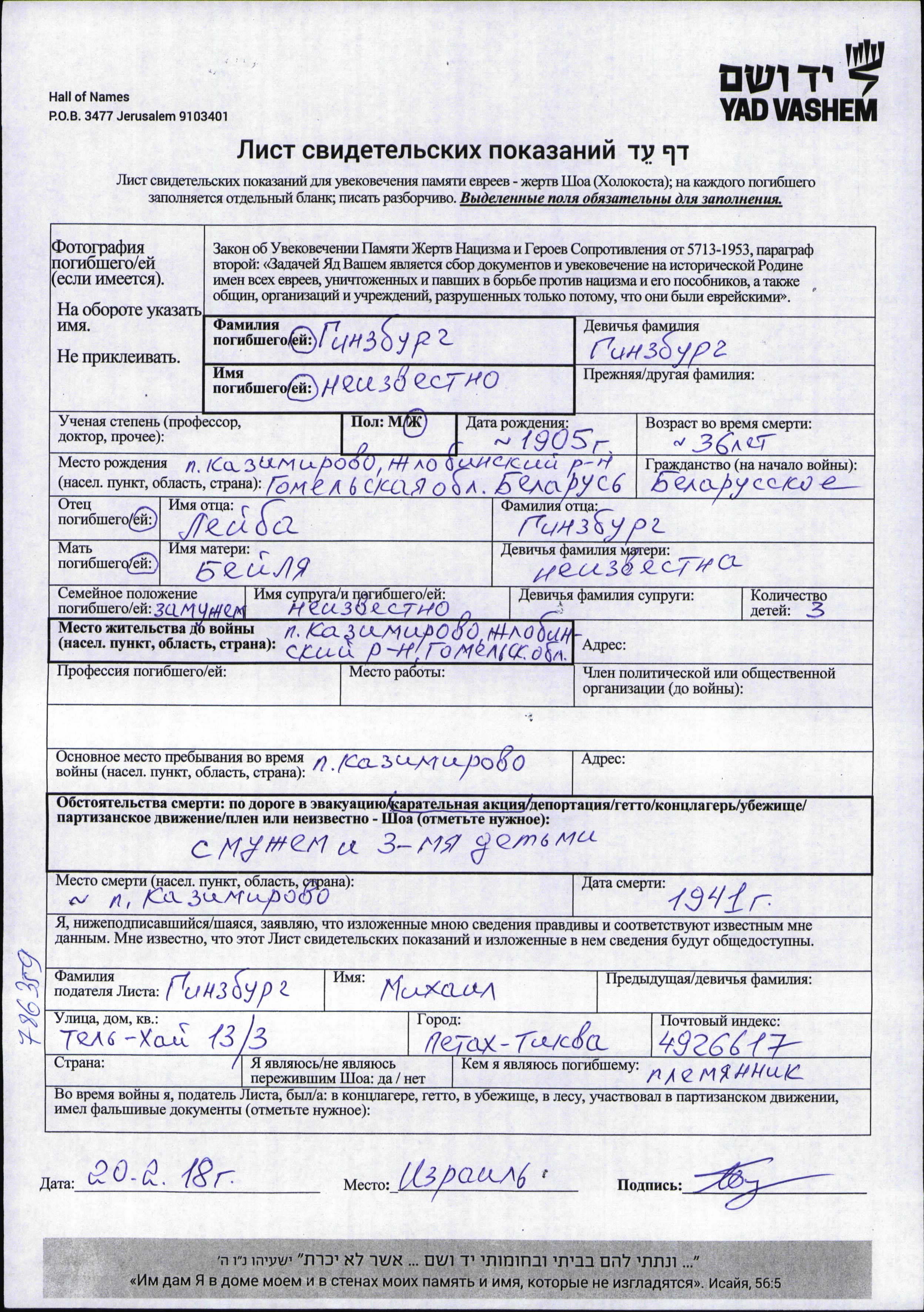 גינזבורג שם פרטי לא ידוע 1905 Kazimirovo, ביאלורוסיה (ברה"מ) דף-עד