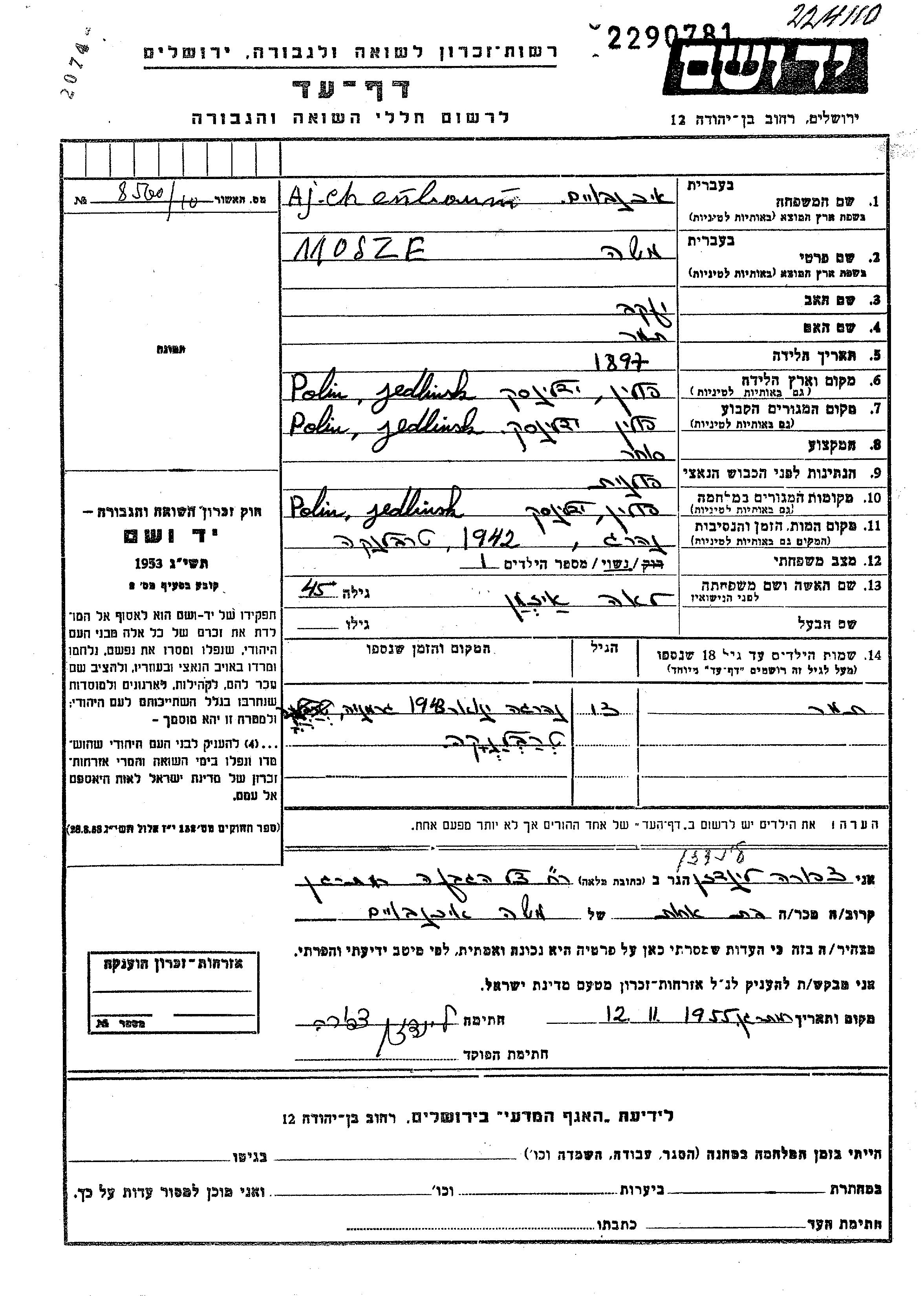 יד ושם - המפעל להנצחת השמות בדפי עד