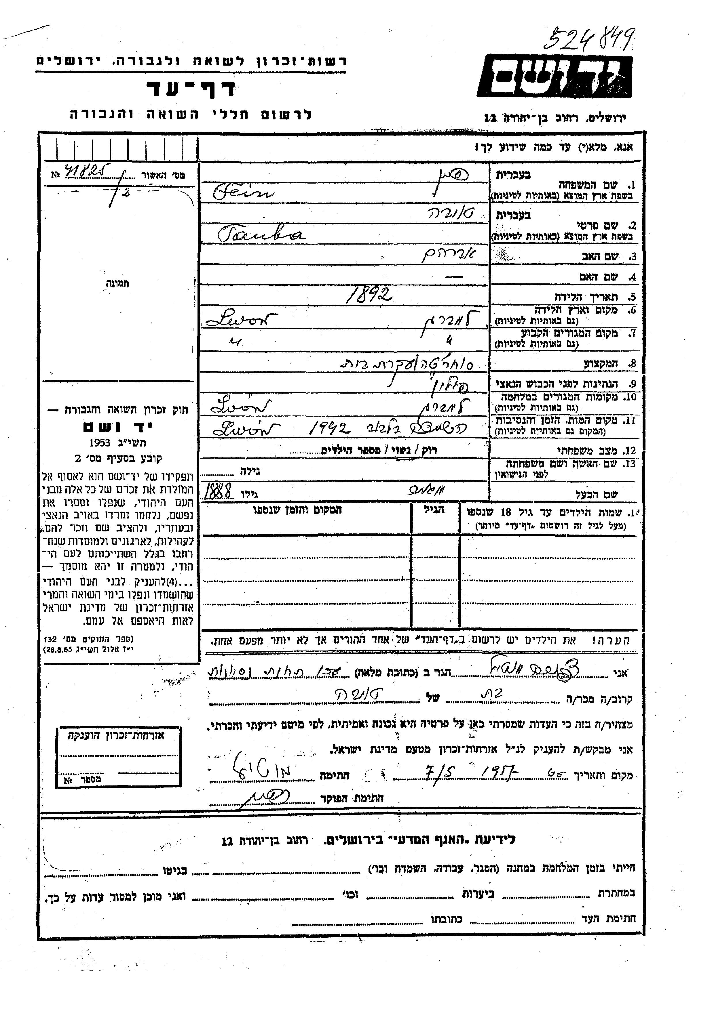 יד ושם - המפעל להנצחת השמות בדפי עד