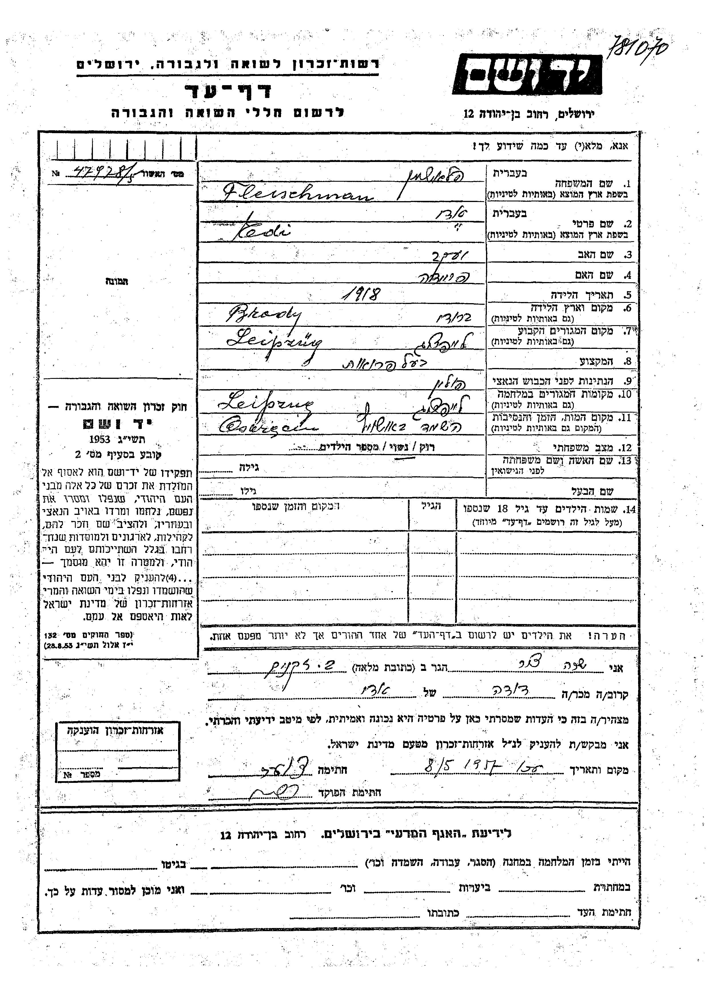 Fleischman פלאשמן Hedi אדי 1918 Leipzig, גרמניה דף-עד