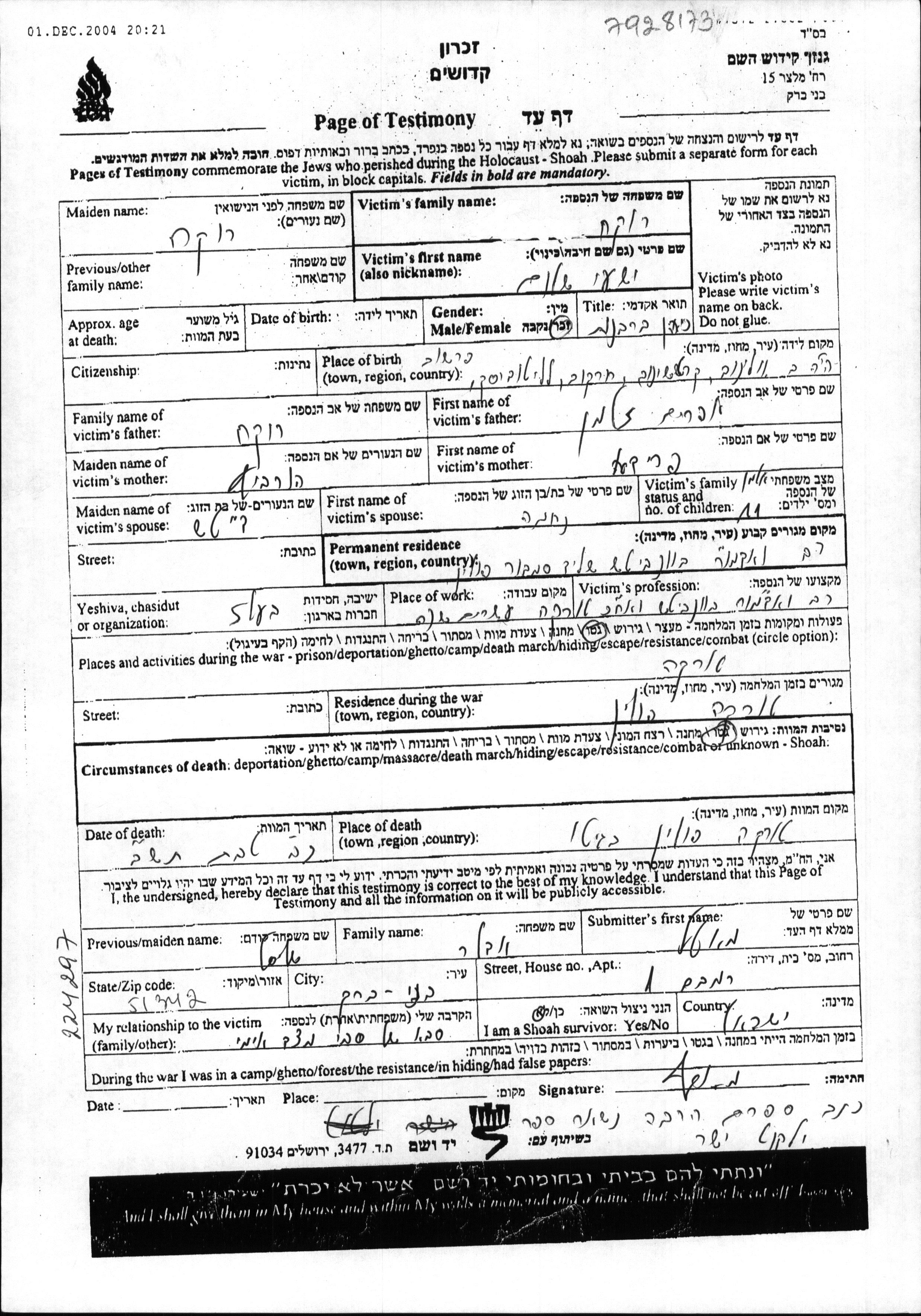 | רוקח | ישעיהו שלום | Turka, פולין | תיעוד של נרצחים | |